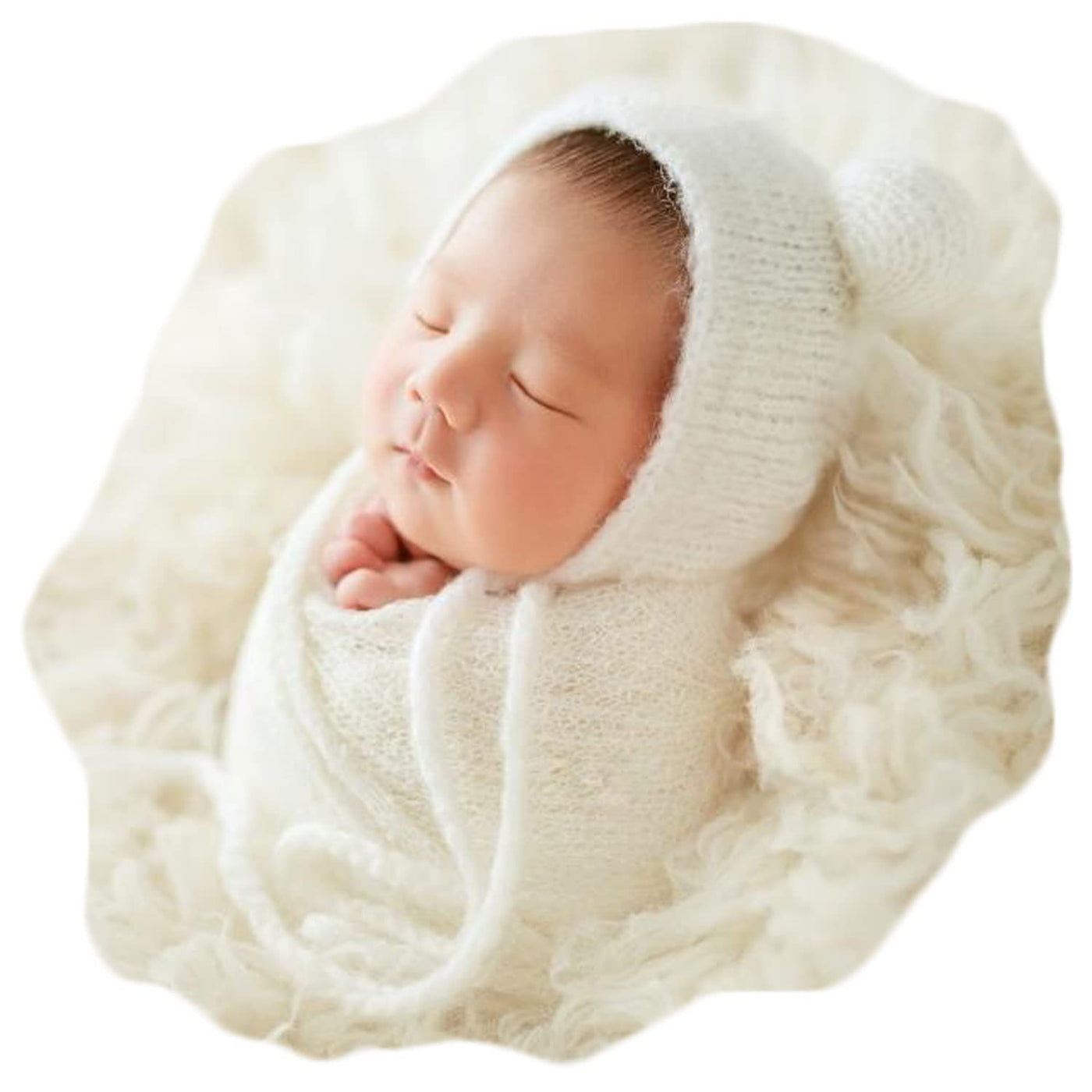 Zeroest Baby Photography Props Wrap Hat Newborn Photo Shoot Outfits Infant Photos Hats Blanket Set (White)
