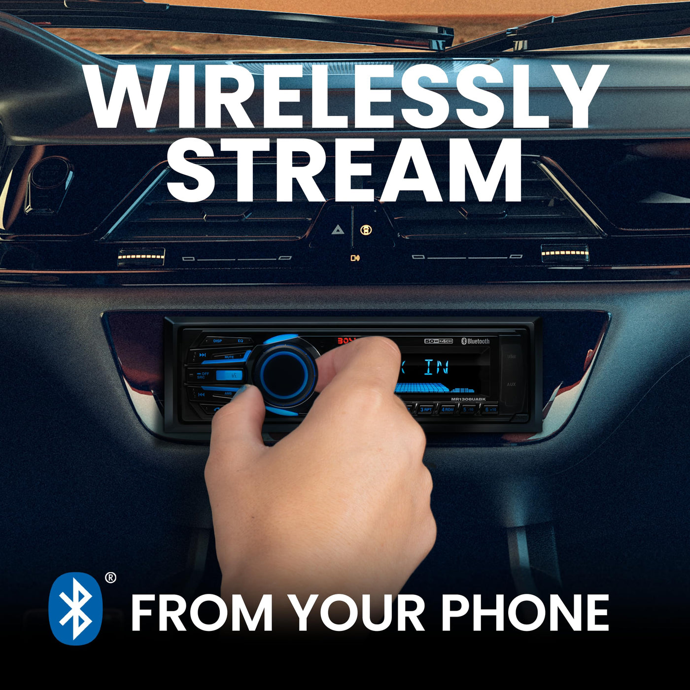 Q: Is the BOSS MR1308UABK compatible with smartphones?A: Yes, the BOSS MR1308UABK is compatible with both Android and iOS smartphones. You can connect your device via Bluetooth to play music and make hands-free calls, enhancing your driving experience.