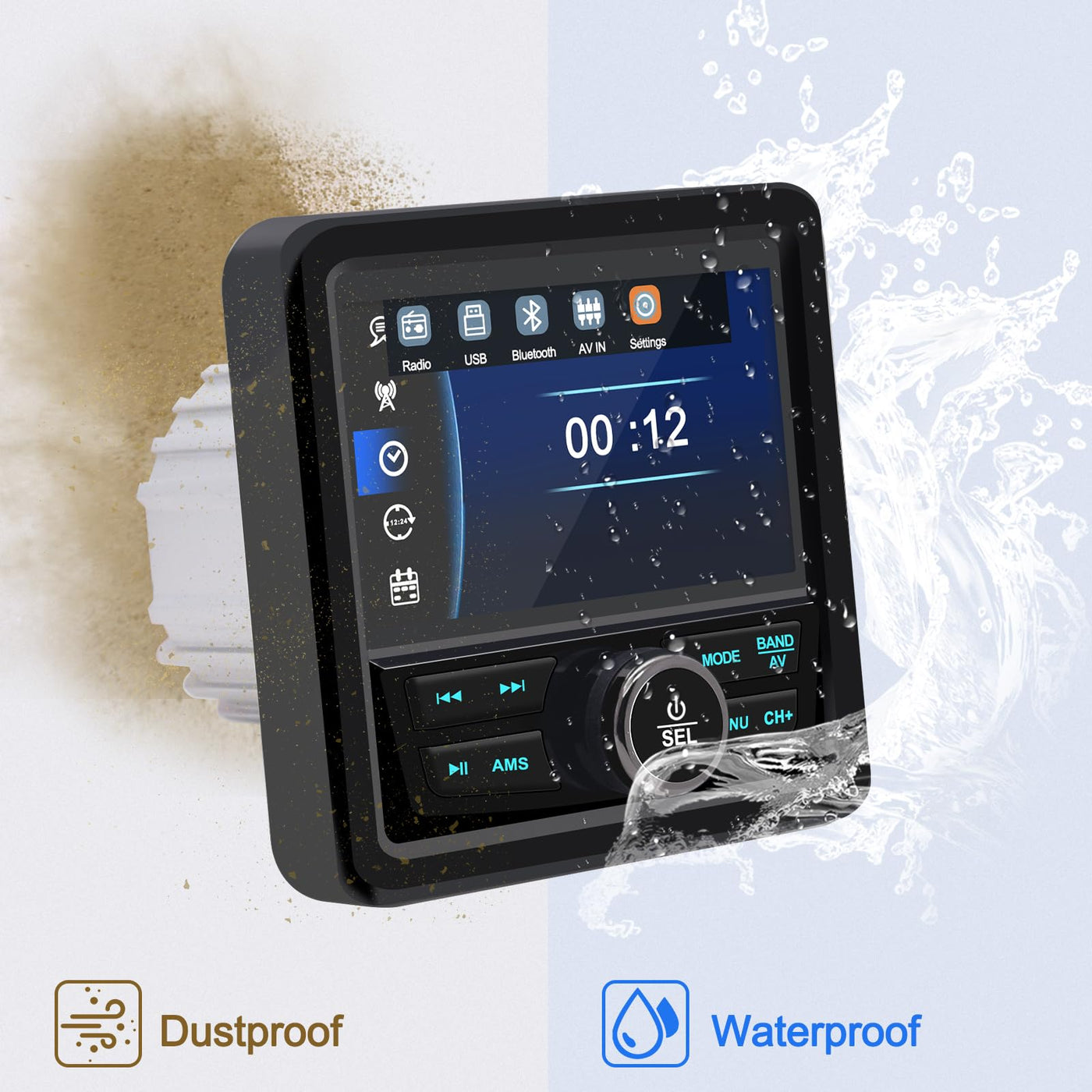 Geloo Boat Radio Marine Stereo Receiver Waterproof Digital Media Mp5 Player With 4.1'' Lcd Display For Watching Video, Wireless
