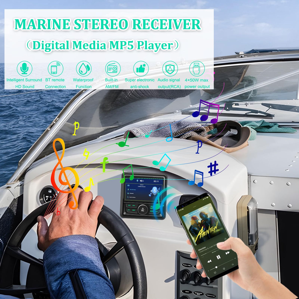 Q: What type of audio formats does this stereo support?A: The Geloo Boat Radio supports MP5 music format and also offers 3D surround sound quality. It can handle high-quality audio formats like FLAC, giving you an immersive music experience.