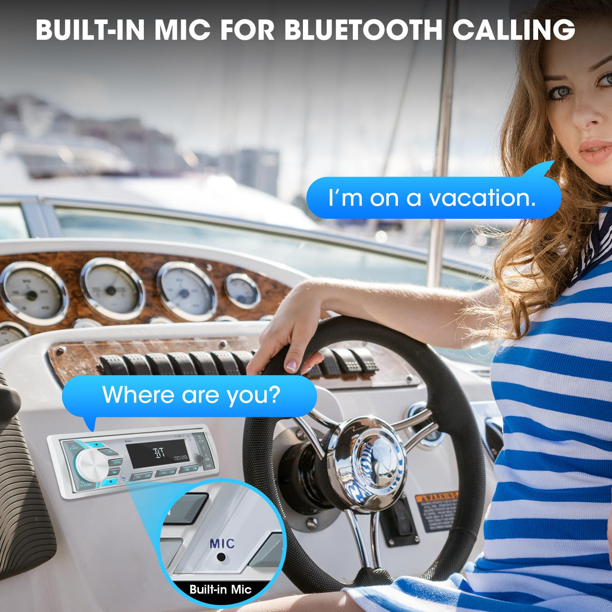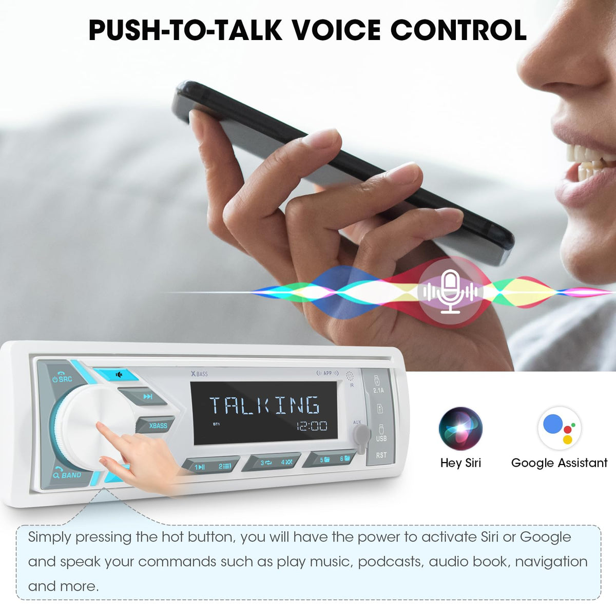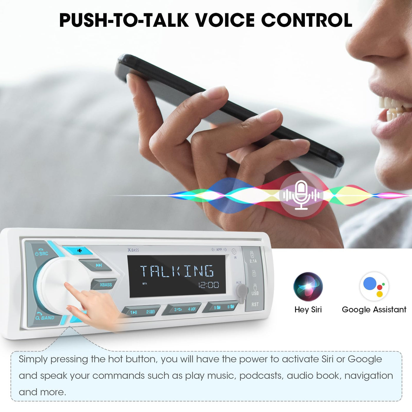 Single Din Marine Stereo Receiver: In Dash Bluetooth Boat Radio Digital Lcd Display Push To Talk Assistant Am Fm Mp3 Sd Aux In