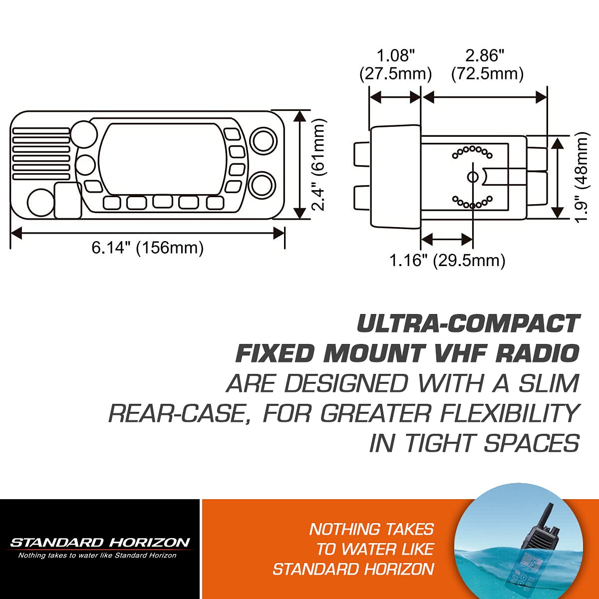Q: What are the dimensions and weight of the STANDARD HORIZON GX1400B VHF?A: The STANDARD HORIZON GX1400B VHF has item package dimensions of 9.84L x 7.40W x 4.06H inches and weighs 2.95 pounds.