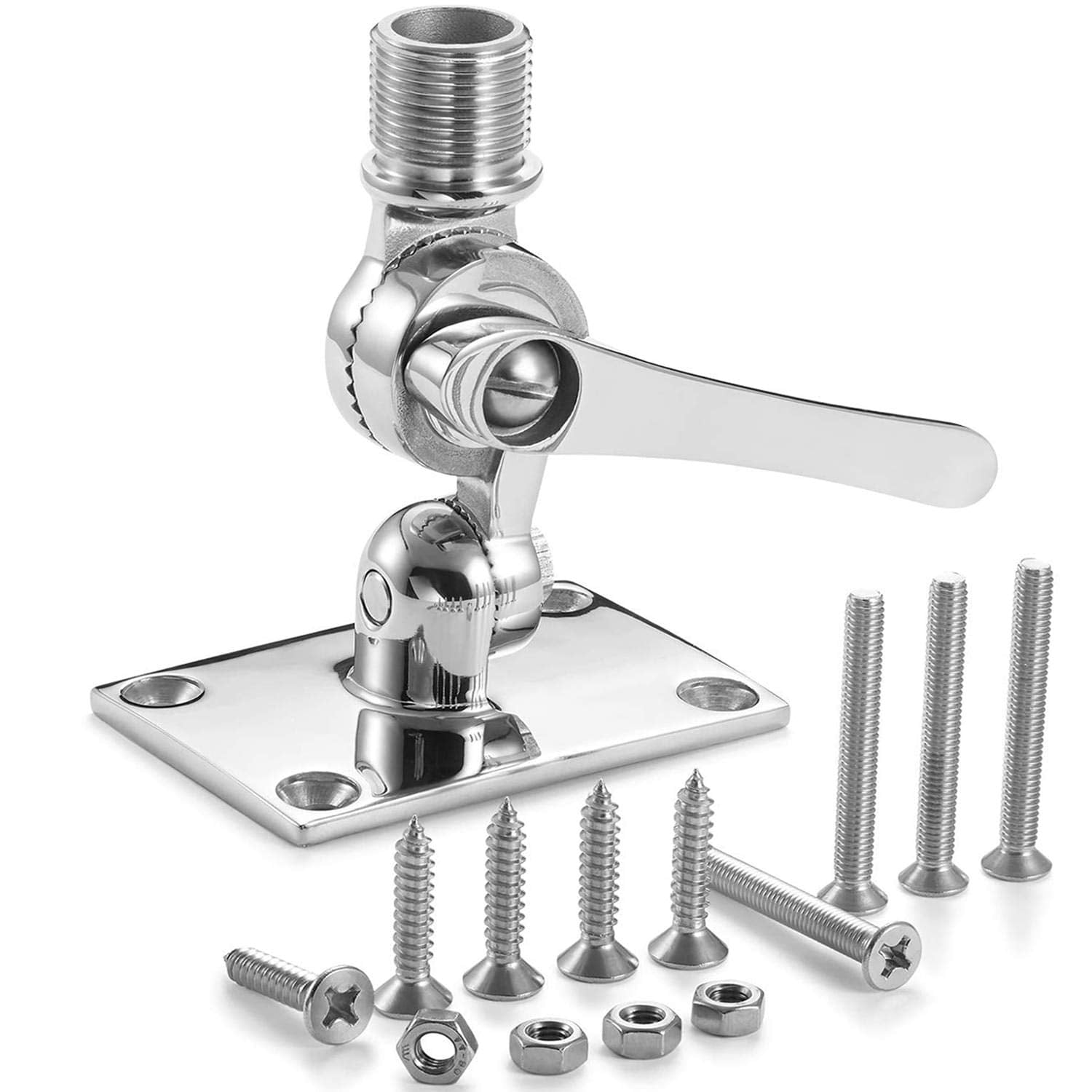 Zomchain Marine Vhf Antenna Mounts, Ratchet Mount, 316 Stainless Steel Adjustable Base Mount For Boat