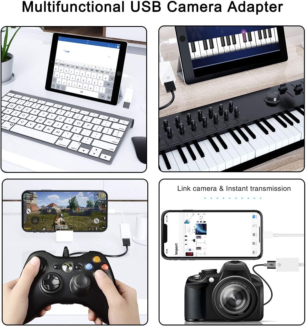 [Apple Mfi Certified] Usb Camera Otg Adapter , Lightning Male To Usb Female Adapter For Iphone/Ipad/Card Reader/Usb Flash Drive/Keyboard/Mouse Plug And Playwith This Usb Camera Adapter, It'S Easy To Transfer Photos And Videos From Your High-Resolution Digital Camera To Your Iphone/Ipad.You Can View Them On The Gorgeous Display And Share With Family And Friends.How To Use: Connect The Lightning Usb Camera Adapter To Iphone/Ipad, Open The Photos App,Which Let You Choose Photos And Videos To Import,Then Organizes Them Into Albums. For Ios13+, Is The Two-Way Transmite. You Can Transsfer Picture,Video,Mp3 Files,Mp4 Files,Excel,Word,Ppt,Pdf On Files App.Widely Compatible:Iphone 14/13/12 Pro Max/Iphone 12 Pro/Iphone 12/Iphone 12 Miniiphone 11/Iphone 11 Pro Max/11 Pro/11Iphone Xs Max/Xs/Xr/Xiphone 8/8 Plusiphone 7/7 Plusiphone 6S/6S Plus/6/6 Plusiphone Se/5S/5C/5 And Ipad Pro 12.9-Inch/Pro10.5-Inch/Pro 9.7-Inch, Ipad Mini 4/Mini 3/Mini 2/Mini, Ipad Air/Air2. Support Ios 10.3 And Up.Note:1.For Ios9.2-12.4: This Adapter For Iphone Only Supports One-Way Transmission From Sd/Tf To The Iphone/Ipad,Connect And Photo App Will Open Automatically2.For Ios 13 And Later Supports Two-Way Transmission3.Connect Wired & Wireless Mouse To Your Iphone/Ipad (Need Ios 13+ And Enable The Assistive Touch On Your Iphone Or Ipad Settings.)4.The Maximum Current Of The Peripherals Does Not Exceed 500 Ma.What You Get1 X Usb Adapter365 Day Warranty Service