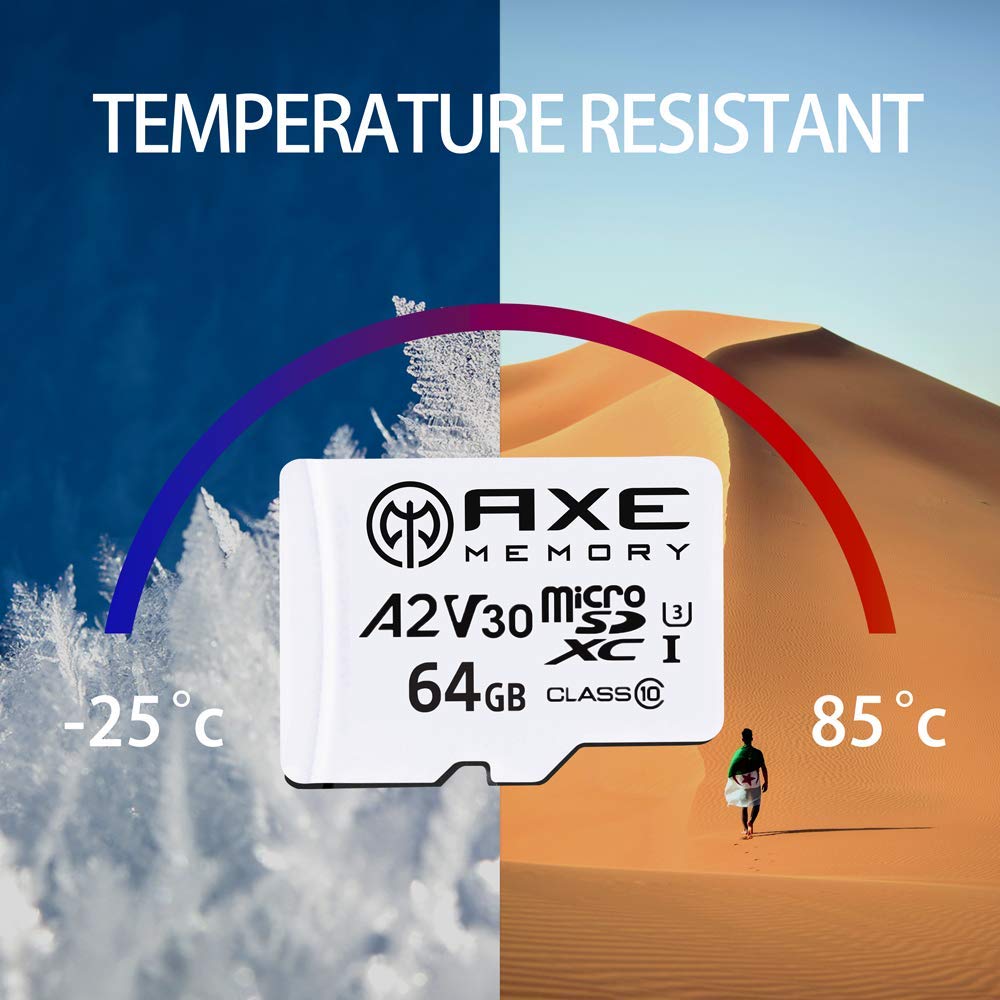 Axe Memory 64Gb Micro Sd Card 4K Ultra Full Hd Video Premium Speed Microsdxc Up To 100Mb/S A2 V30 Uhs I U3, With Sd Adapter