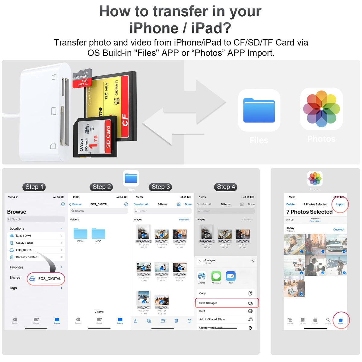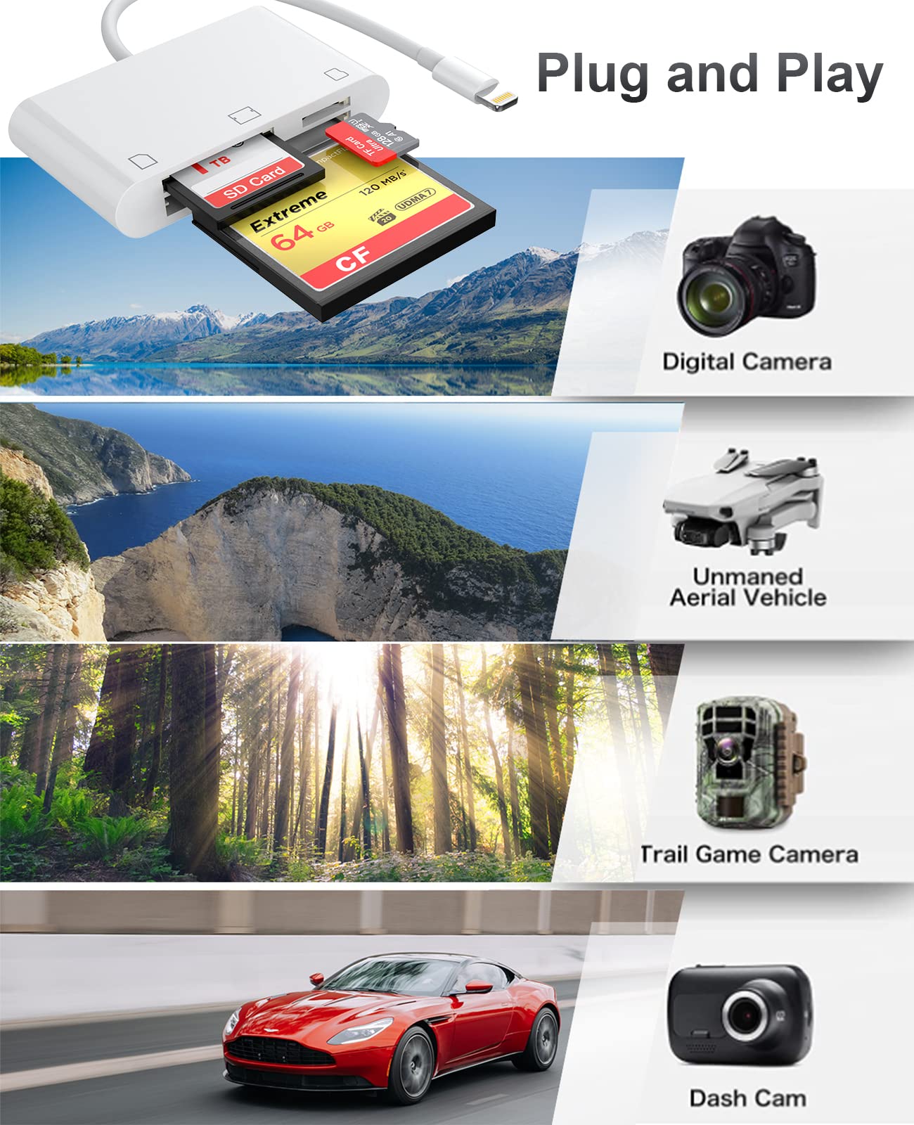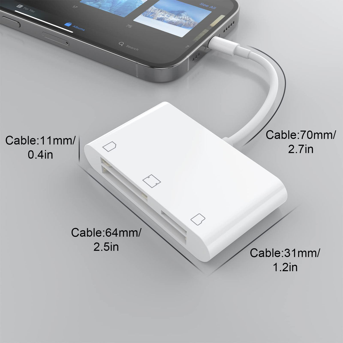 Cf Sd Card Reader For Ipad Iphone Memory Card Reader For Sd/Tf/Cf Card, 3 In 1 Lightning To Card Reader Digital Camera Adapter Viewer For Iphone 13/13 Pro/12/12 Pro No Need App Plug And Play