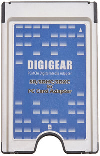 Q: Is the Digigear SD to PCMCIA Adapter compatible with all SD card types?A: Yes, the adapter is compatible with SD, SDHC (4GB to 32GB), and SDXC (48GB and above) cards, as well as miniSD and microSD formats when used with an adapter.