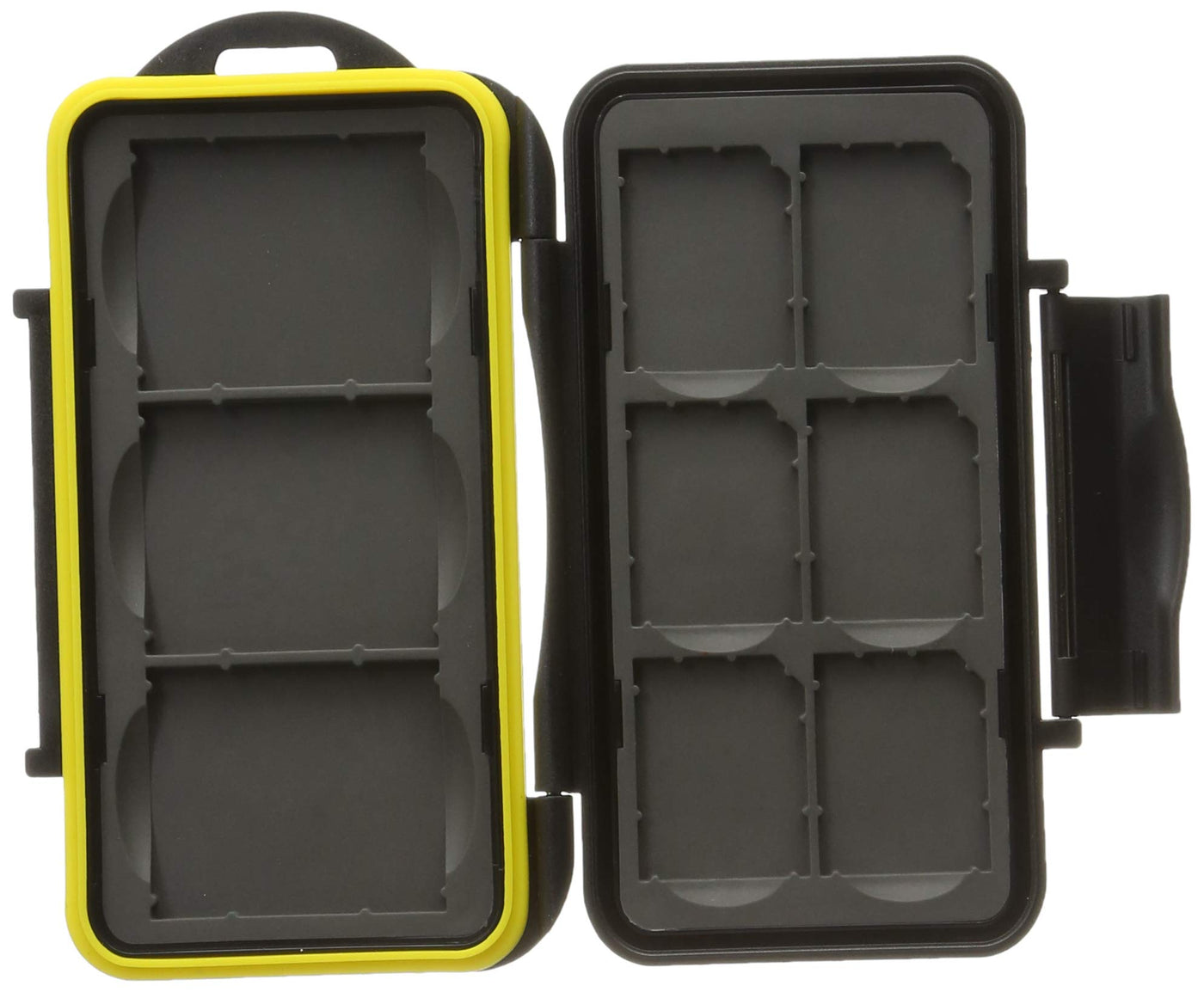 Q: Is the JJC MC-SD6CF3 memory card case waterproof?A: Yes, this memory card case is made from rugged water-resistant polycarbonate resin and features a rubber seal, providing excellent protection against water and moisture.