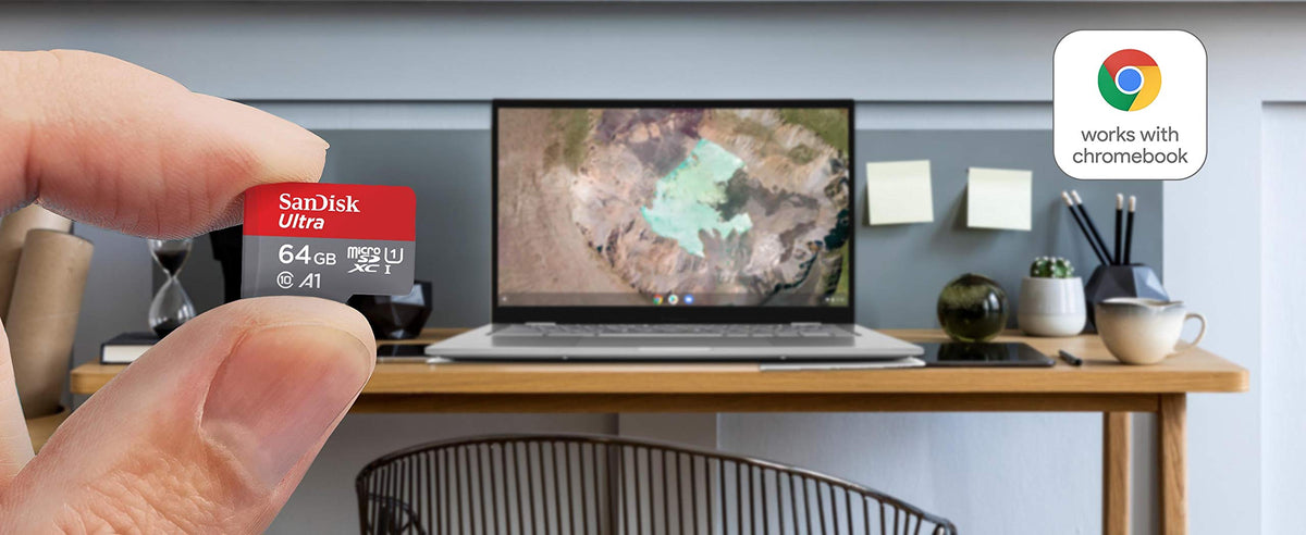 Q: Is the SanDisk 64GB Ultra microSD UHS-I Card compatible with all Chromebooks?A: Yes, the SanDisk 64GB Ultra microSD UHS-I Card is tested and certified to work seamlessly with Chromebooks, ensuring compatibility and reliable performance.