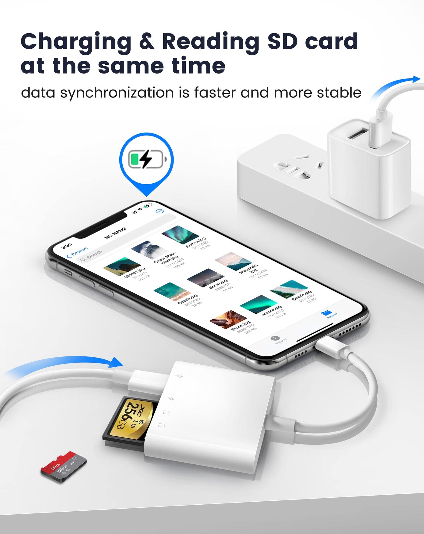 Warm Tips 1.For Ios13:Photos App Will Not Pop Up, Please Find The Information You Need From Files App. 2.If The Iphone To Usb Adapter Cannot Recognize Your Iphone/Ipad (Or Disconnect It). The External Device May Needs A Large Current, So Please Use A 2A Power Charger To Charge The Iphone Sd Card Adapter While Transmitting. 3.The Usb Port Can Work Simultaneously With The Sd Card. However, Only One Memory Card Can Be Read At A Time. (Please Wait About 5 Seconds After Inserting The Sd Card Reader.) 4.Incompatible Devices With Iphone Usb Adapter: Hard Disk, Printer, Recorder, Portable Wifi, Bluetooth Adapter, Etc. 5.Not Compatiable With Usb-C
