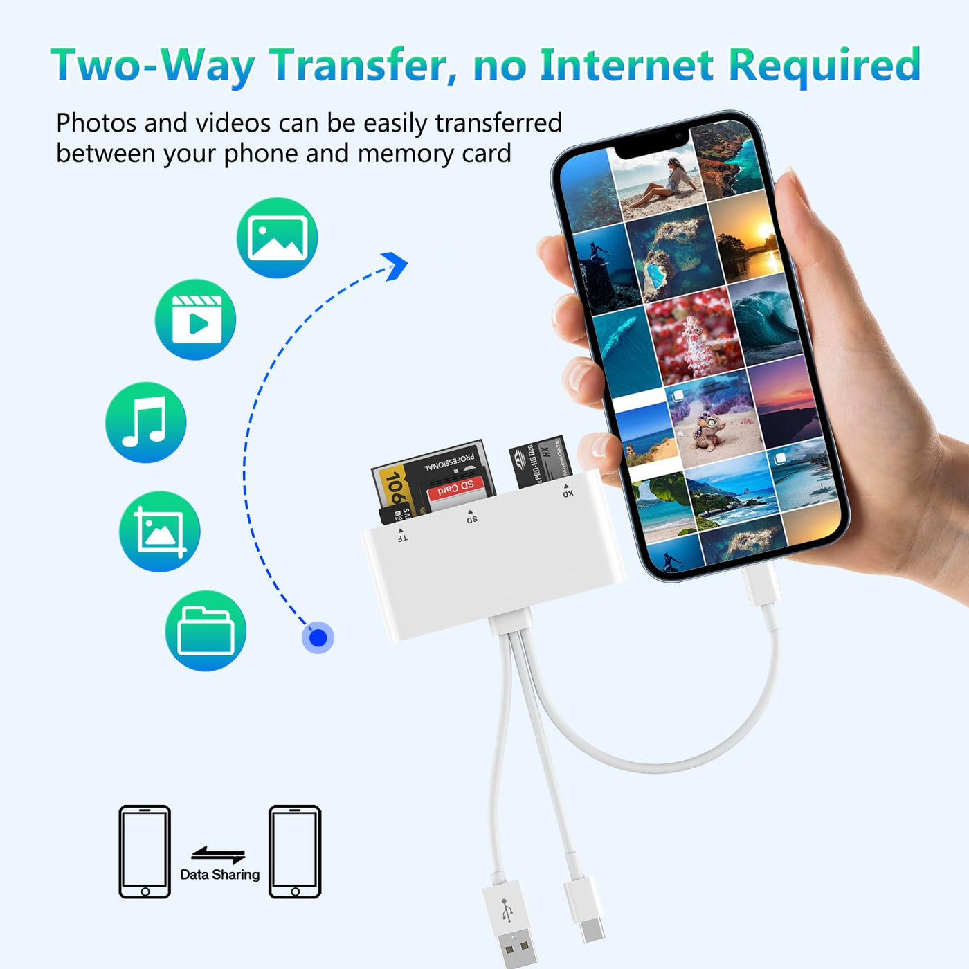 Sd/Tf/Ms/Cf/Xd Card Reader For Iphone/Ipad, 5 In 3 Lightning & Usb C & Usb A Connector Memory Sd Card Adapter, Multi Memory Card
