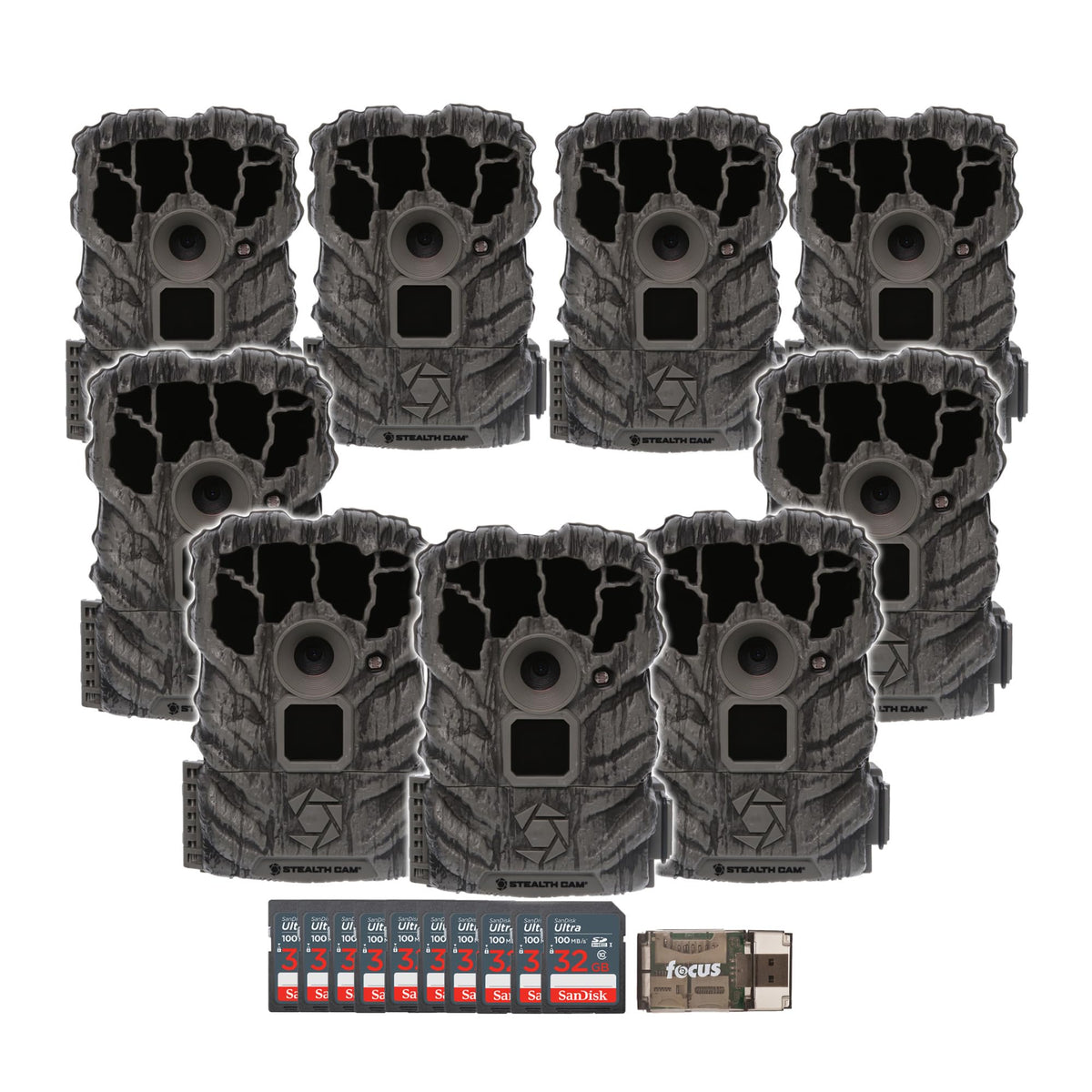 Stealth Cam Browtine 14Mp Camera (3 Pack) With 32Gb Memory Card (9 Pack) And Card Reader Bundle (13 Items)