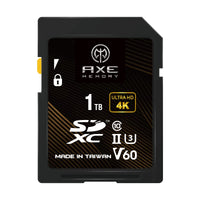 Axe Memory Sd Card 1Tb V60, 245Mb/S Uhs Ii U3 4K Ultra Full Hd, Professional Grade Sdxc Memory Card
