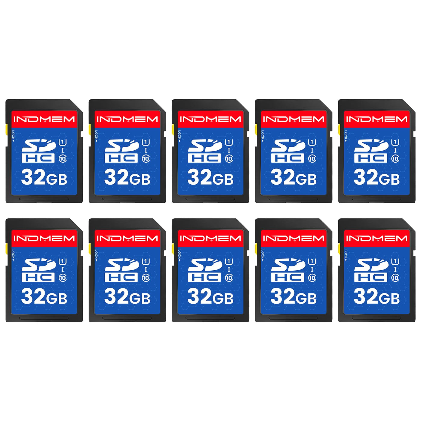 INDMEM SD Card 32GB, 10-Pack UHS-I Class 10 MLC Flash Memory Card, High-Speed Secure Digital Cards for Cameras, DSLR, Action Cam
