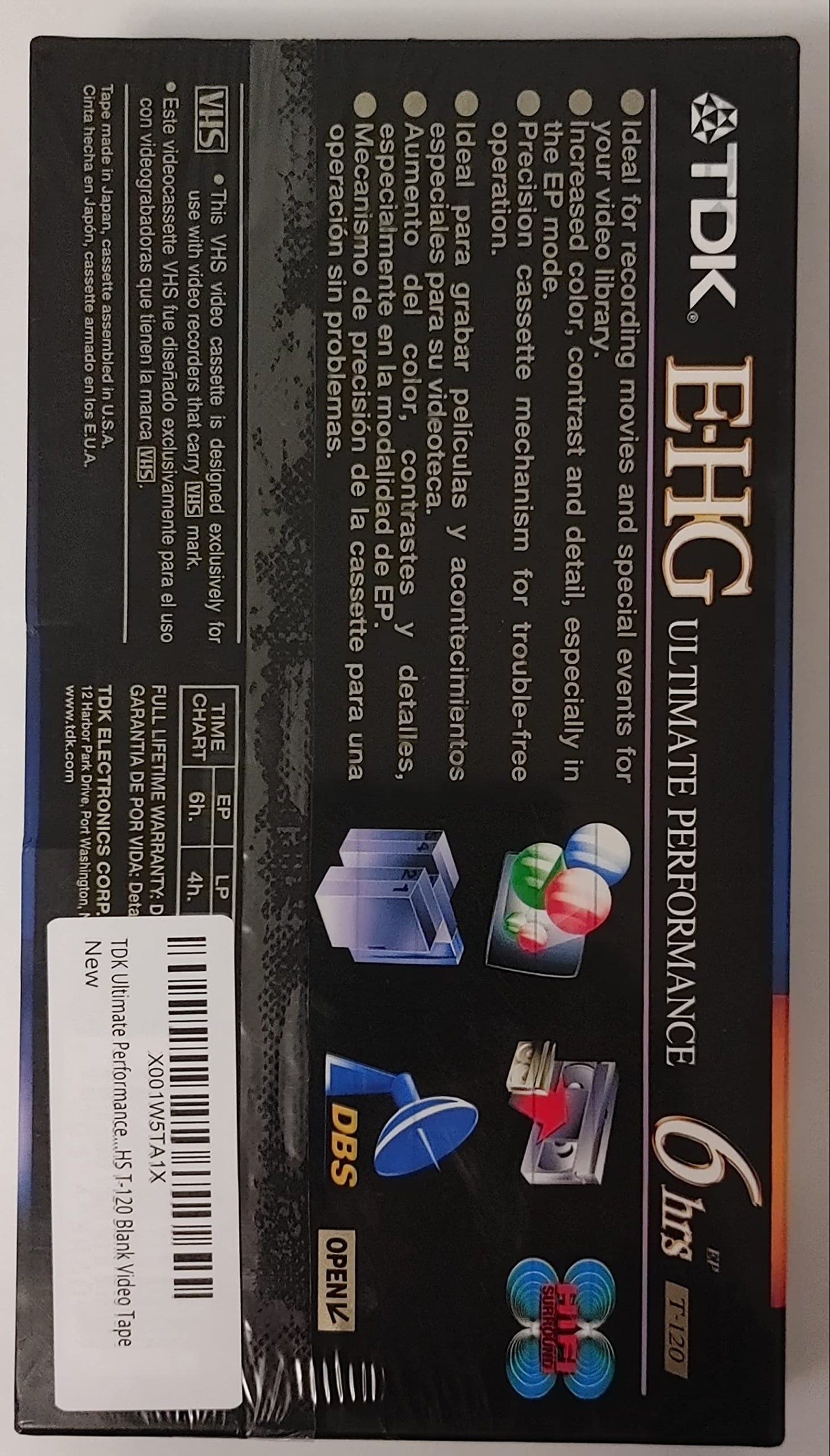 Tdk Ultimate Performance E-Hg Extra High Grade Vhs T-120 Blank Video Tape