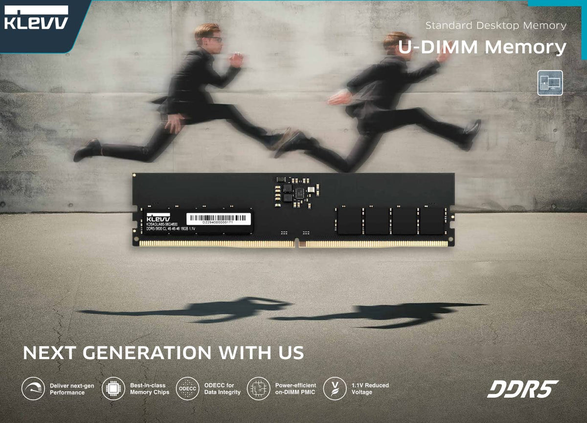 Q: How does On-Die ECC improve the reliability of the KLEVV DDR5 RAM?A: On-Die ECC (Error Correction Code) allows for single-bit correction within the chip, enhancing application security by improving overall data reliability and stability during operation.