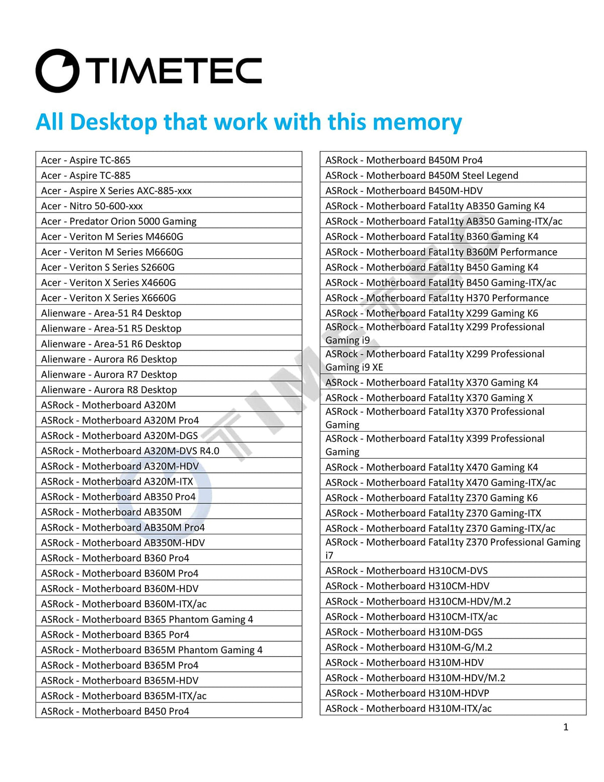 Timetec - Memory Of A Lifetimecompatible With (But Not Limited To):*Please Click Image For More Compatible Systems Modelneed To Know If This Part Is Compatible?Contact Us With Manufacturer And Model Information Of Your Motherboard