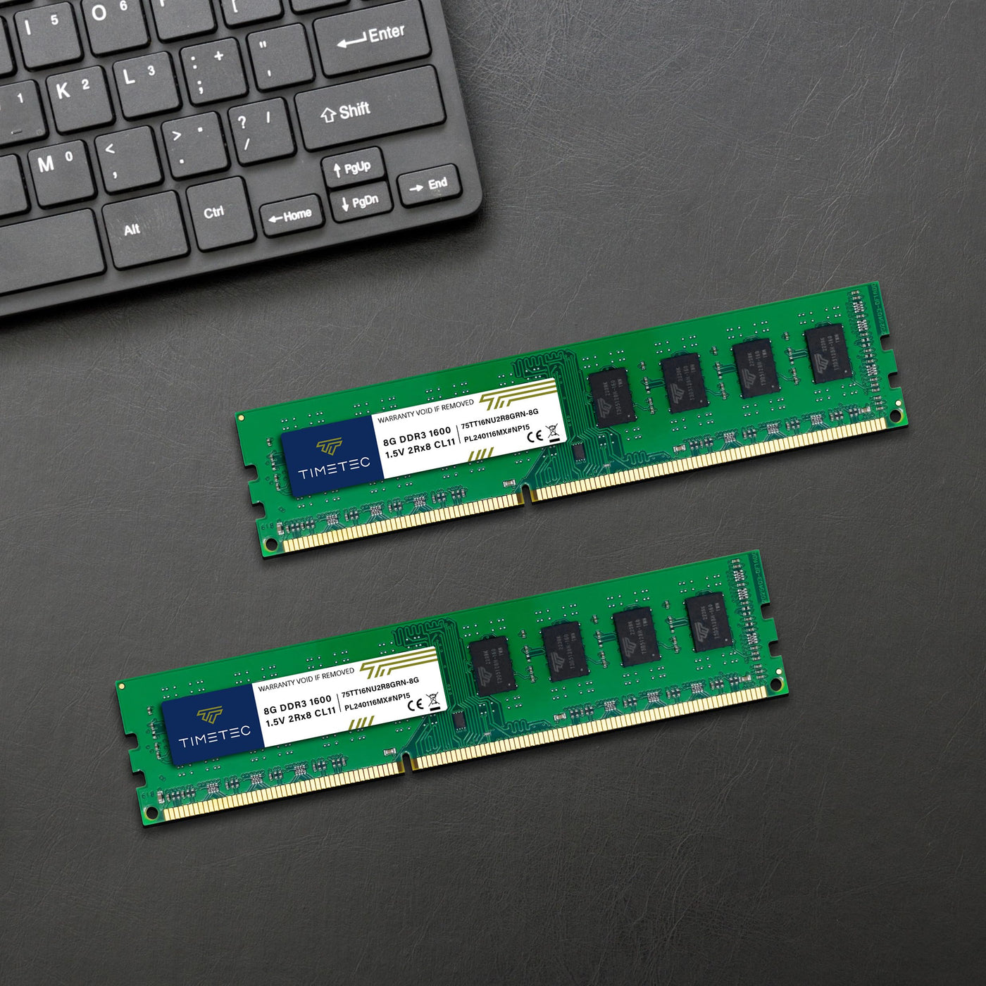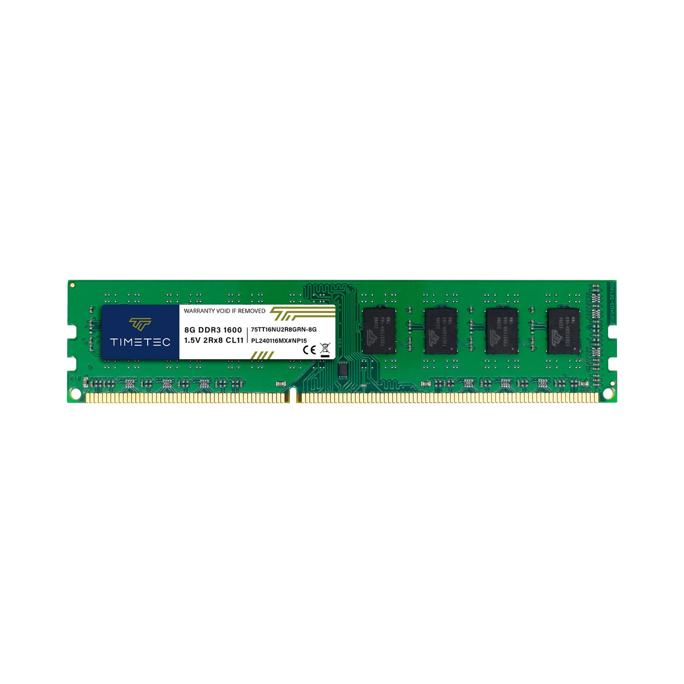 Q: What is the speed and voltage of the Timetec 8GB DDR3 RAM?A: This RAM module operates at a speed of 1600MHz and has a voltage of 1.5V, adhering to the JEDEC standard, ensuring optimal performance for your desktop setup.