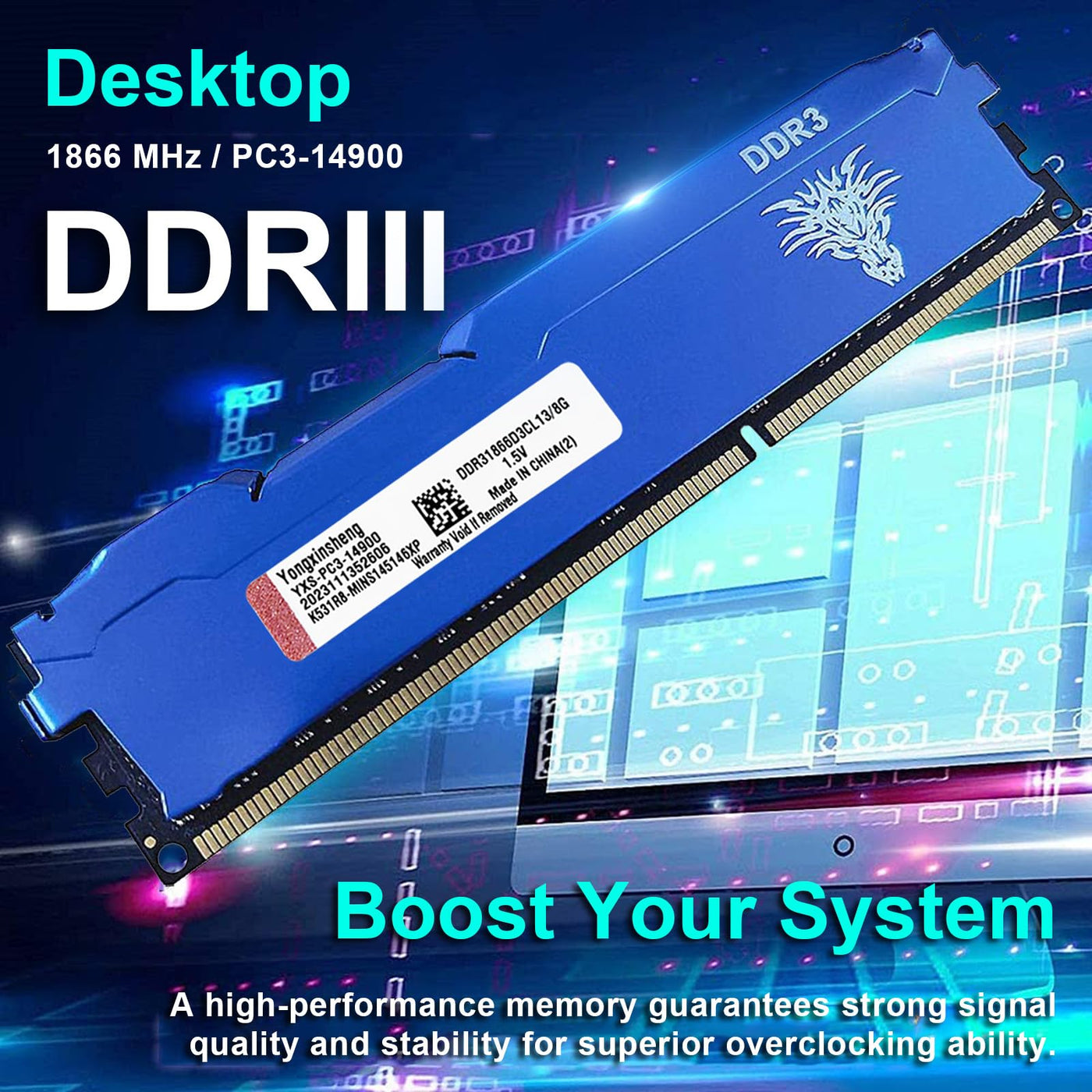 Yongxinsheng Ddr3 32Gb Kit (8Gbx4) Desktop Ram 1866Mhz Pc3 14900 Udimm Non Ecc Unbuffered 1.5V 2Rx8 Dual Rank 240 Pin Cl13 Pc Co