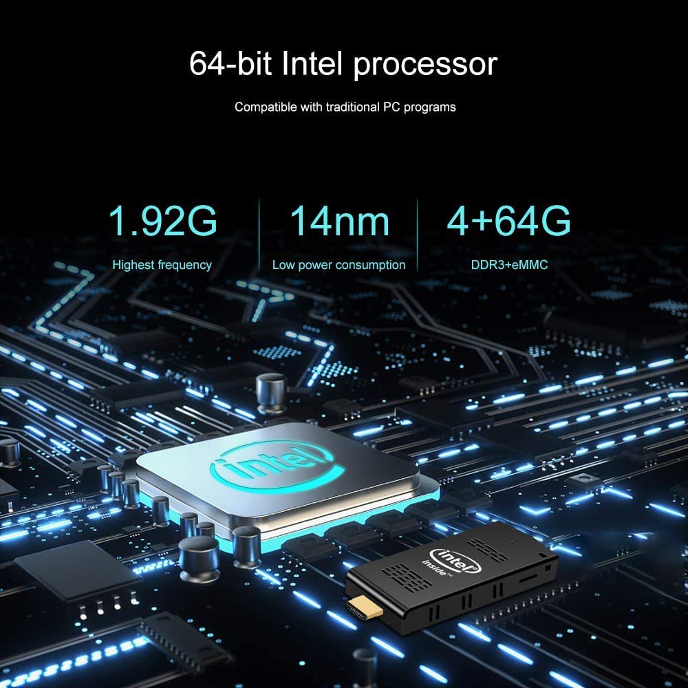 Tips To Better Use This Intel Pc Stick 1. This Intel Pc Stick Support Auto-On After Power Failure : Step 1: Power Up Your Pc Stick And Press Esc To Enter Bios.Step 2:Select Menu ''Advanced'' Then ''System Component'',Press Enter. Step 3: Select Menu ''Poweron After G3'',Press Enter Again. Step 4:Select ''Enabled'', Press F4 To Save. 2. Add A Micro Sd Card For Saving Your More And More Files Or Documents. 3. Uninstall Any Program Or App That Isn'T Needed Or Used. Once Done, There Was Enough Space To Update Windows. Processor Cpu: Intel Atom X5-Z8350 Processor Base Frequency:1.44 Ghz Burst Frequency: 1.92 Ghz Cache: 2 Mb Cores: 4 Storage Memory Size: 4Gb Memory Types: Ddr3L Hard Disk Size:64Gb Hard Disk Types: Emmc Processor Graphics Gpu: Intel Hd Graphics 400 Graphics Base Frequency: 200 Mhz Graphics Burst Frequency: 500 Mhz I/O Specifications Usb: 1X Usb 3.0,1X Usb 2.0 Video Interface: 1X Hdmi 1X Micro Sd Card Slot 1X Dc Power Port 1X Power Key 1X Reset Wireless Technology Wi-Fi: 2.4G/5G Built-In Wifi Bluetooth: Bt 4.2 Package List 1X S5 Intel Pc Stick 1X Power Adapter 1X Hdmi Cable 1X User Manual
