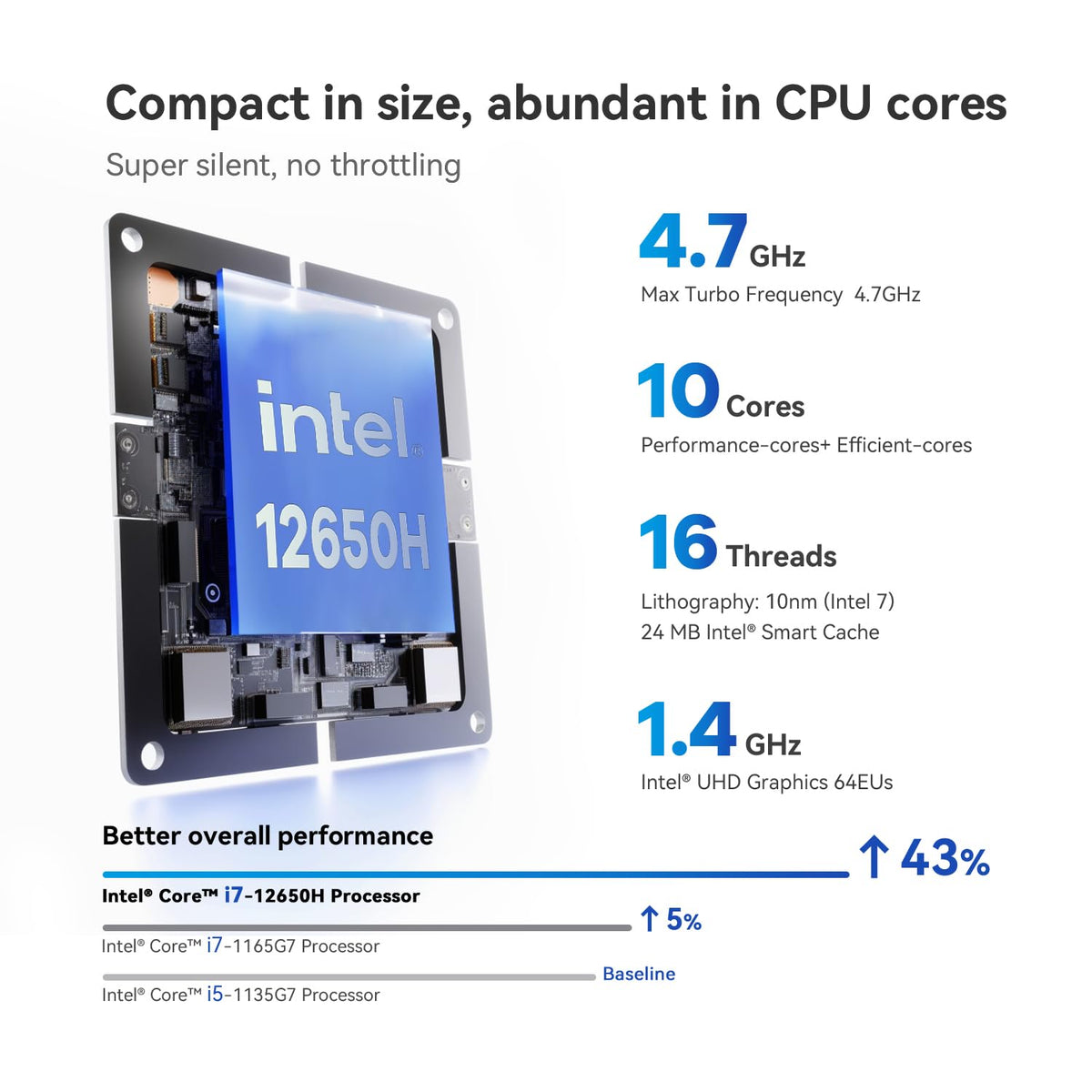 Beelink Sei12 Mini Pc, I7 12650H (10C/16T, Up To 4.7Ghz) 12Th Gen Cpu Mini Desktop Computer, 32Gb Ram 500Gb Pcle4.0 Ssd, Hdmi, D