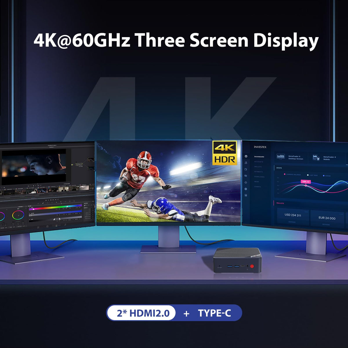 Bosgame Mini Pc N100 Intel 12Th Mini Computers Windows 11 Pro 16Gb Ddr4 Ram 512Gb Pcie X1 Ssd, 4K 60Hz Triple Displays By Dual H