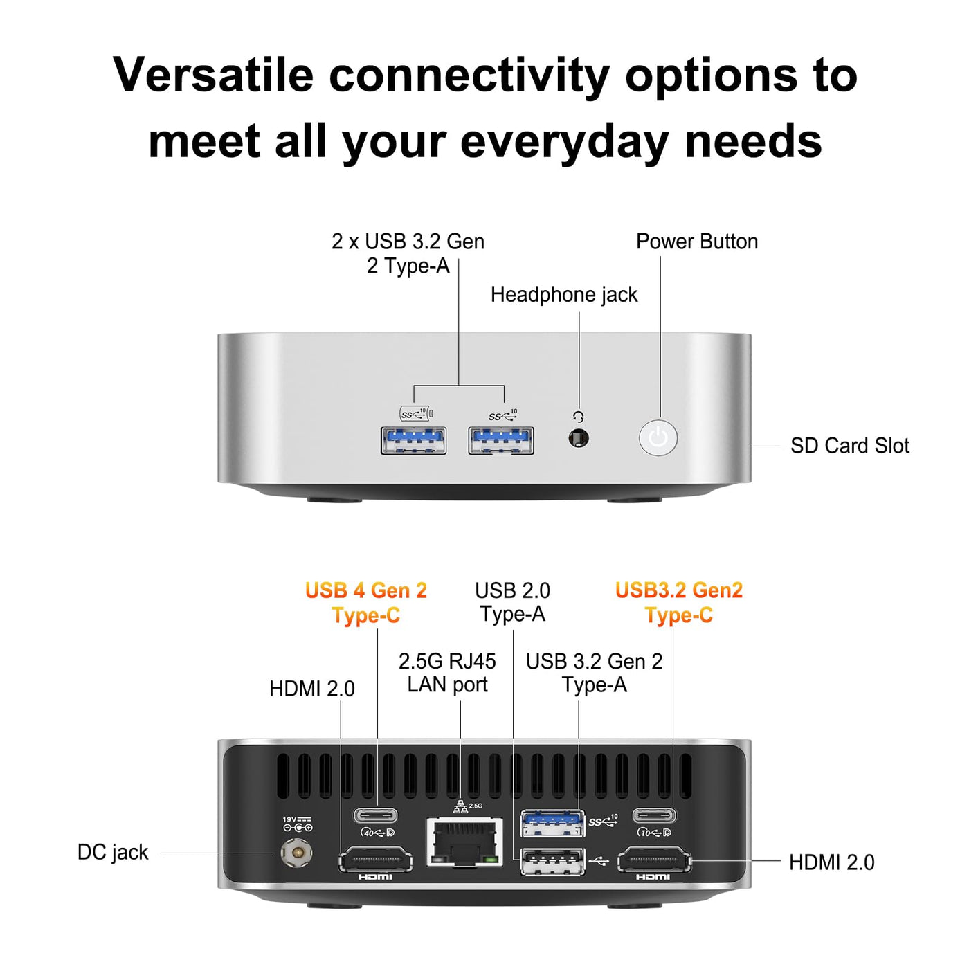 Geekom A6 Mini Pc With Amd Ryzen 7 6800H, 16Gb Ddr5 Ram 512Gb M.2 Nvme Ssd, Radeon 680M, Compact Aluminium Design Windows 11 Desktop Computer For Home/Business, Usb4/8K Uhd/Wi-Fi 6E/Bt 5.2/Sd Slot