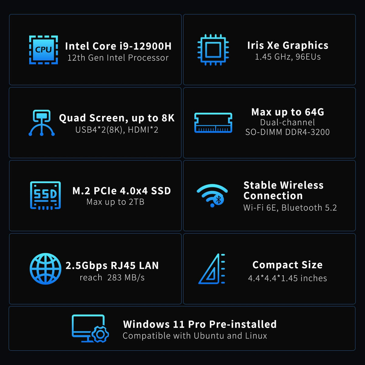 Geekom Mini Pc Gt12 Pro 12Th Gen Intel I9 12900H Nuc12 Mini Computers(14 C/20T Up To 5Ghz) 32Gb Ddr4/1Tb Pcie Gen 4 Ssd Window