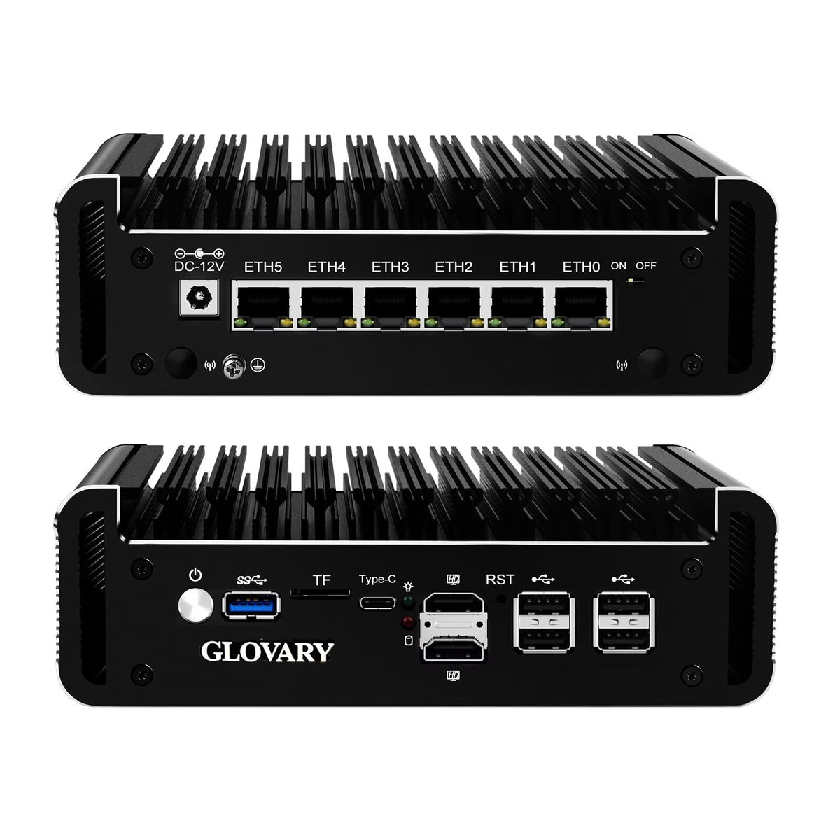 Glovary Firewall Mini Pc Quad Core N150, Ddr5 8Gb Ram 128Gb Nvme Ssd, 6 X 2.5Gbe I226V Lan Fanless Computer Hardware, Micro Rout