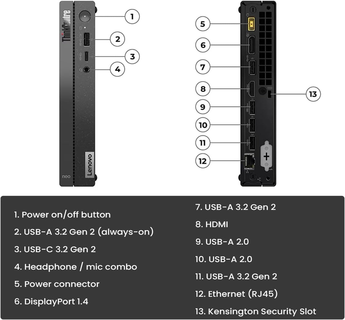 Key Features And Benefits: Cpu: 13Th Gen Intel Core I5-13420H Processor (1.5Ghz Up To 4.6Ghz, 8 Cores, 12 Threads, 12Mb L3 Cache) Memory: Up To 64Gb Ddr4 Ram Hard Drive: Up To 2Tb Pcie Nvme M.2 Solid State Drive Or 1Tb Pcie Nvme M.2 Solid State Drive + 2Tb Hdd Operating System: Windows 11 Pro Graphics: Intel Uhd Graphics Ports: 3 X Usb-A 3.02 X Usb-A 2.01 X Usb Type-C1 X Power On/Off Button 1 X Hdmi 1 X Displayport1 X Rj-45 1 X Headphone / Mic Combo 1 X Power Connector 1 X Kensington Security Slot Wireless Connectivity: Wi-Fi 6 And Bluetooth Keyboard Mouse: Wired Keyboard And Mouse Combo Height: 7.04 Inch Width: 7.20 Inch Depth: 1.35 Inch Weight: 2.45 Lbs Color: Black