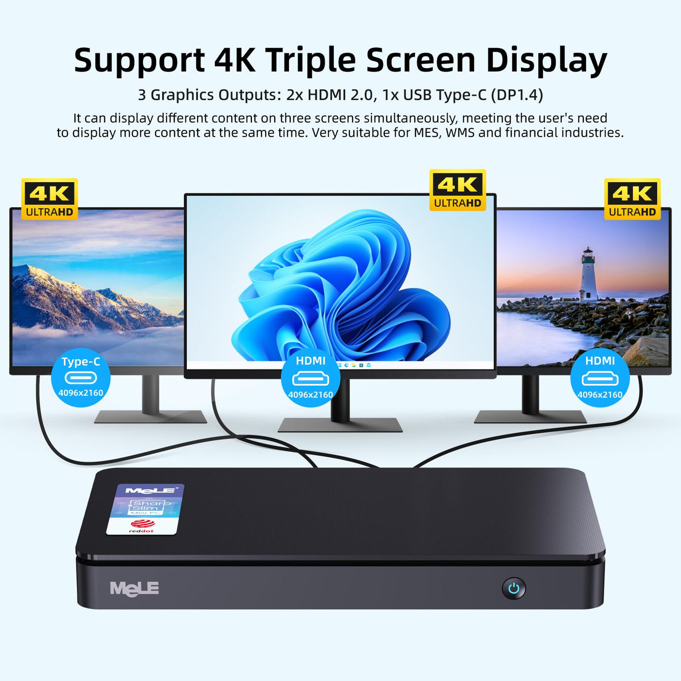 Mele Overclock4C N95(Up To 3.4Ghz) 16Gb 512Gb Slim Mini Pc Windows 11 Pro Dual Hdmi + Usb Type C 4K Triple Display Wifi 6 Bt5.2