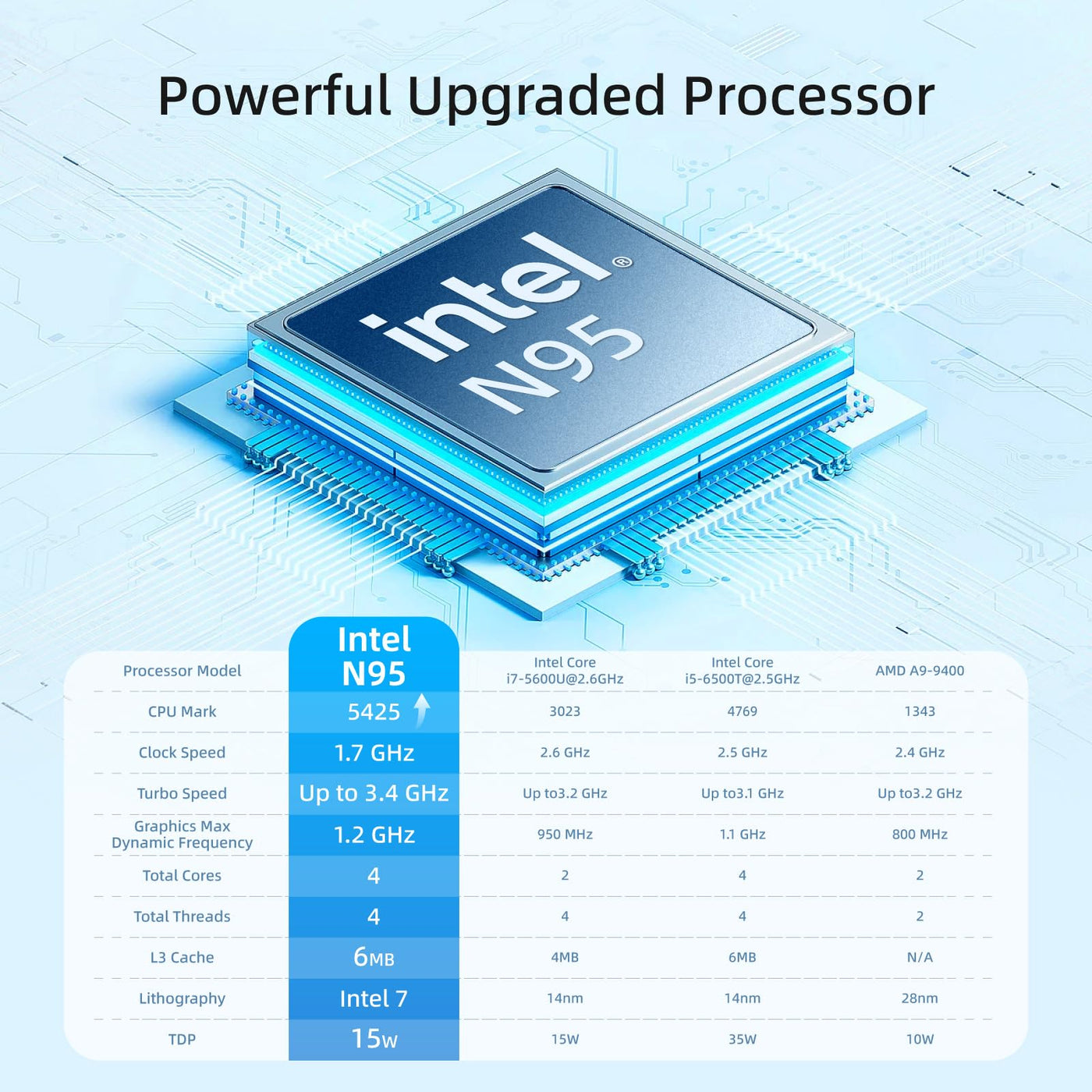 Mele Mini Pc Overclock4C, Usb Type C Mini Desktop Computer N95 16Gb 512Gb Windows 11 Pro 4K Triple Display Wifi 6 Bt5.2 Gigabit Ethernet Micro Pc, Support Linux Ubuntu Debian, For Business Industrial Iot Office Home Theater