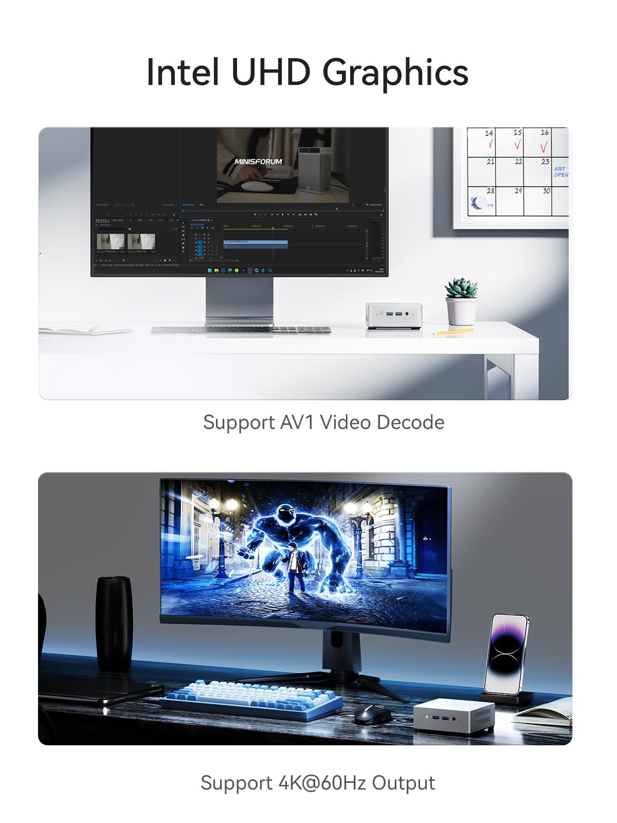 Minisforum Un100L Mini Pc 12Th Gen Alder Lake N100(Up To 3.4Ghz) Desktop Computer, Lpddr5 16Gb Ram 512Gb Ssd, 1X Hdmi, 1Xdp, 1X