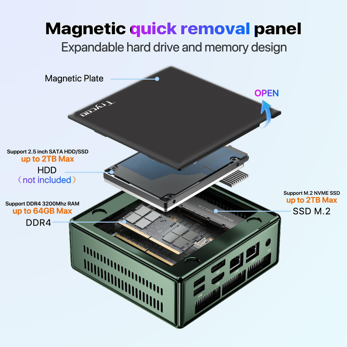 Trycoo Wo4 Mini Pc, Amd Ryzen 5 5560U(4.0Ghz) Processor, 16Gb Ddr4 Ram 500Gb Nvme Ssd, Mini Desktop Computer Support 4K@60Hz Triple Output/Wifi6/Bt5.2/Dual Rj45/Usb3.2,Supports Up To 4Tb Ssd Expansion