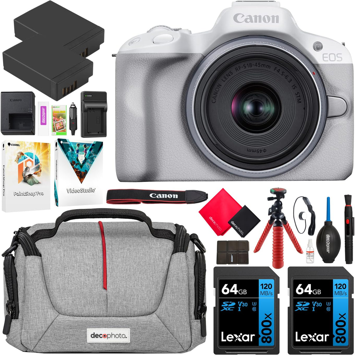 Canon Eos R50 Mirrorless Aps-C Interchangeable Lens Camera Body Black 5811C002 Bundle With Deco Gear Photography Bag + 2 X Batte