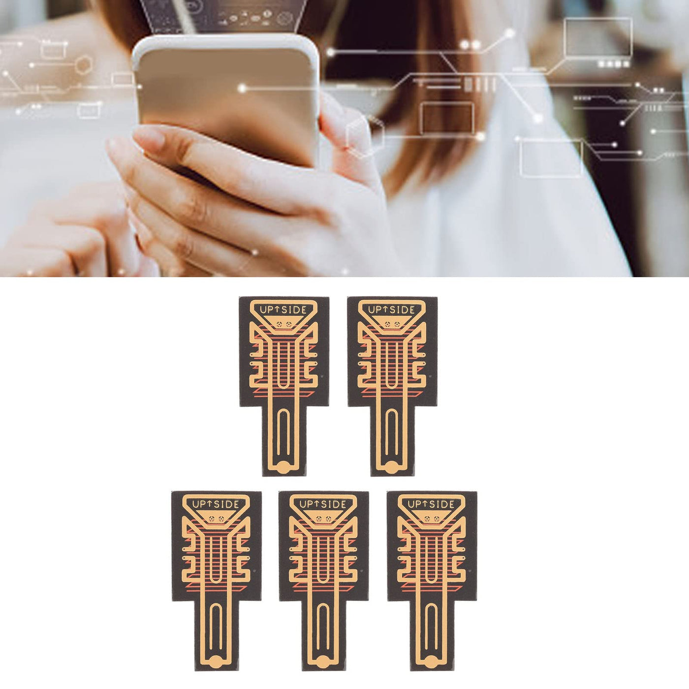 Spec: Item Type: Phone Signal Booster Sticker Color: Black Gold Material: Pcb Weight: Approx.10G/0.4Oz Parameters: Improved Mobile Phone Signal, Suitable For Smart Devices Such As Mobile Phones Suitable: For Ships, Elevators, Cars, Buildings, Tunnels, Mountains And Other Locations