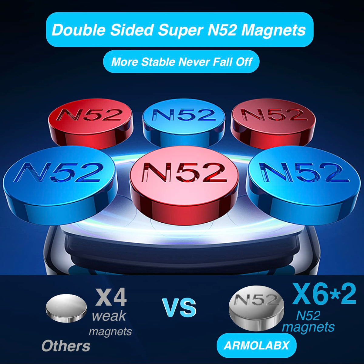 Armolabx Dual Magnetic Phone Mount Holder, [Upgraded Super Magnets] Gym Magnetic Phone Holder, [Pocket Size] Double Sided Magnet