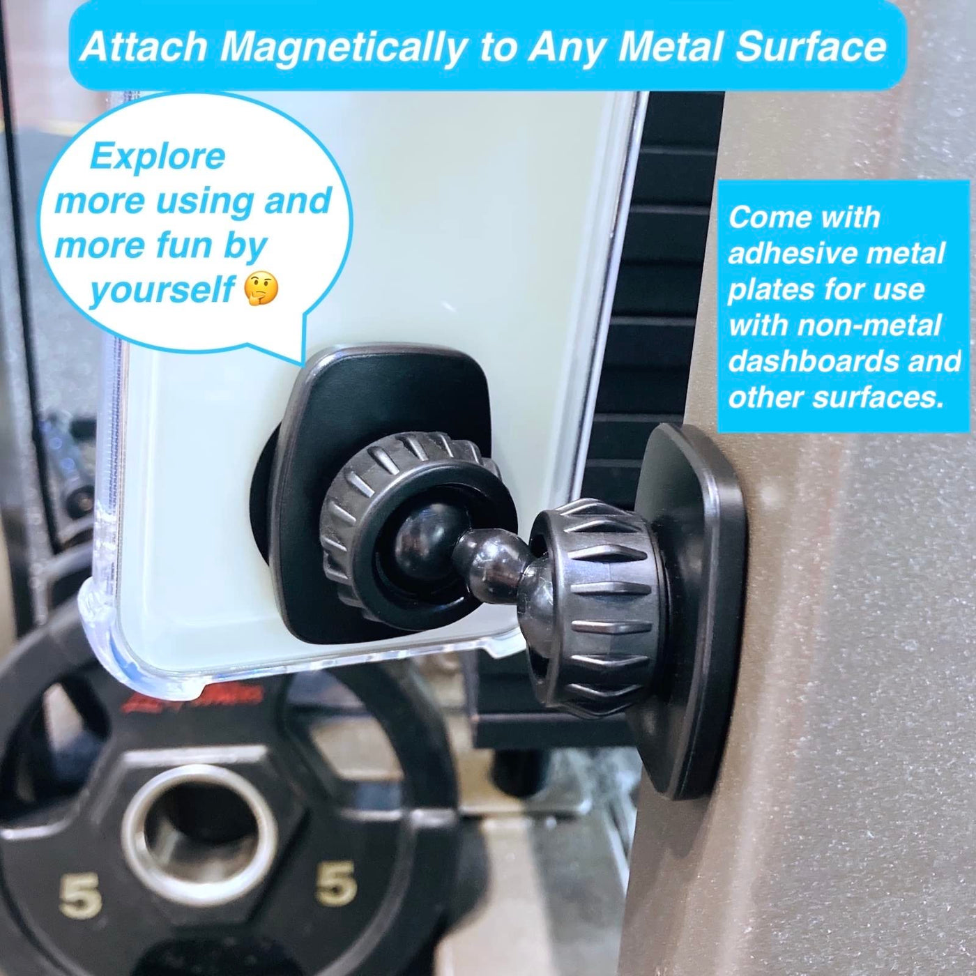 ??Multifunctional Magnetic Phone Holder Mount By Armolabx???&Nbsp;Please Tighten The Fixing Nuts Before Using For Hold Your Phone Up.?&Nbsp;Must Use Metal Plates, Including The Iphone 12/13/14 Series.?&Nbsp;For Magsafe Phones Or Other Wireless Charging Phones, Please Stick The Metal Plate On The Bottom Of Your Phone, Then Dont Block Wireless Charging Function.? Works With All Phones With Metal Plate,&Nbsp;?&Nbsp;Not For Magsafe Phones Directly.&Nbsp;??What You Will Get:&Nbsp;Dual Magnetic Gym Phone Holder X 1&Nbsp;Metal Plate X 4??Facts You Need To Know??Q1: Do I Need To Stick A Metal Plate In My Iphone 14/ 13/ 12 Pro Max To Use?A1: Yes, You Must Need To Stick The Metal Plate On Your Phones. In Order To Dont Block Wireless Charging Function, You Can Stick The Metal Plate On The Bottom Of Your Phone.Q2: Would This Product Impact My Wireless Charging Capability?A2: If You Stick The Metal Plate On The Bottom Of Your Phone Or Case, Then It Will Not Impact The Wireless Charging Capability.Q3: What Is The Use Of The 4 Pack Metal Plates?A3:&Nbsp;2 Pack Metal Phone Plate For You Stick On Your Phone Or Case, 2 Pack Metal Plate Stick On Non-Metal Surface For More Using.&Nbsp;Our Dual Magnetic Phone Holder Is Not Only For Gym, But Also Can For Motorcycles Tank, Tractor, Toolbox, Mechanics, Car, Truck, Boat, Forklift, Atv Phone Holder.&Nbsp;??Please Explore More Using And More Fun By Yourself.