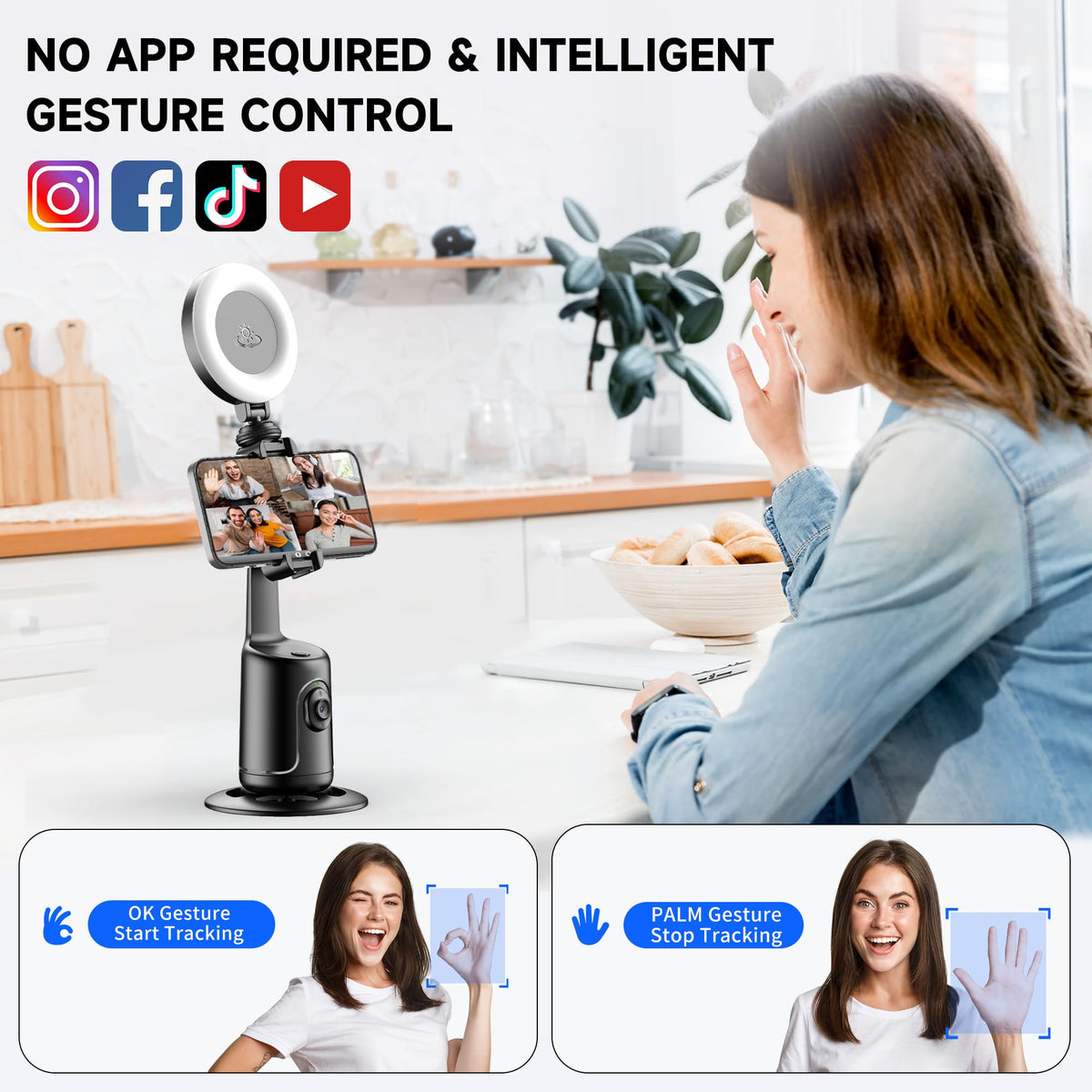 Auto Face Tracking Tripod With 2 Selfie Ring Light, 360 Rotation Face Body Phone Holder Smart Shooting Camera Mount With Remote, Rechargeable Smart Shooting Holder
