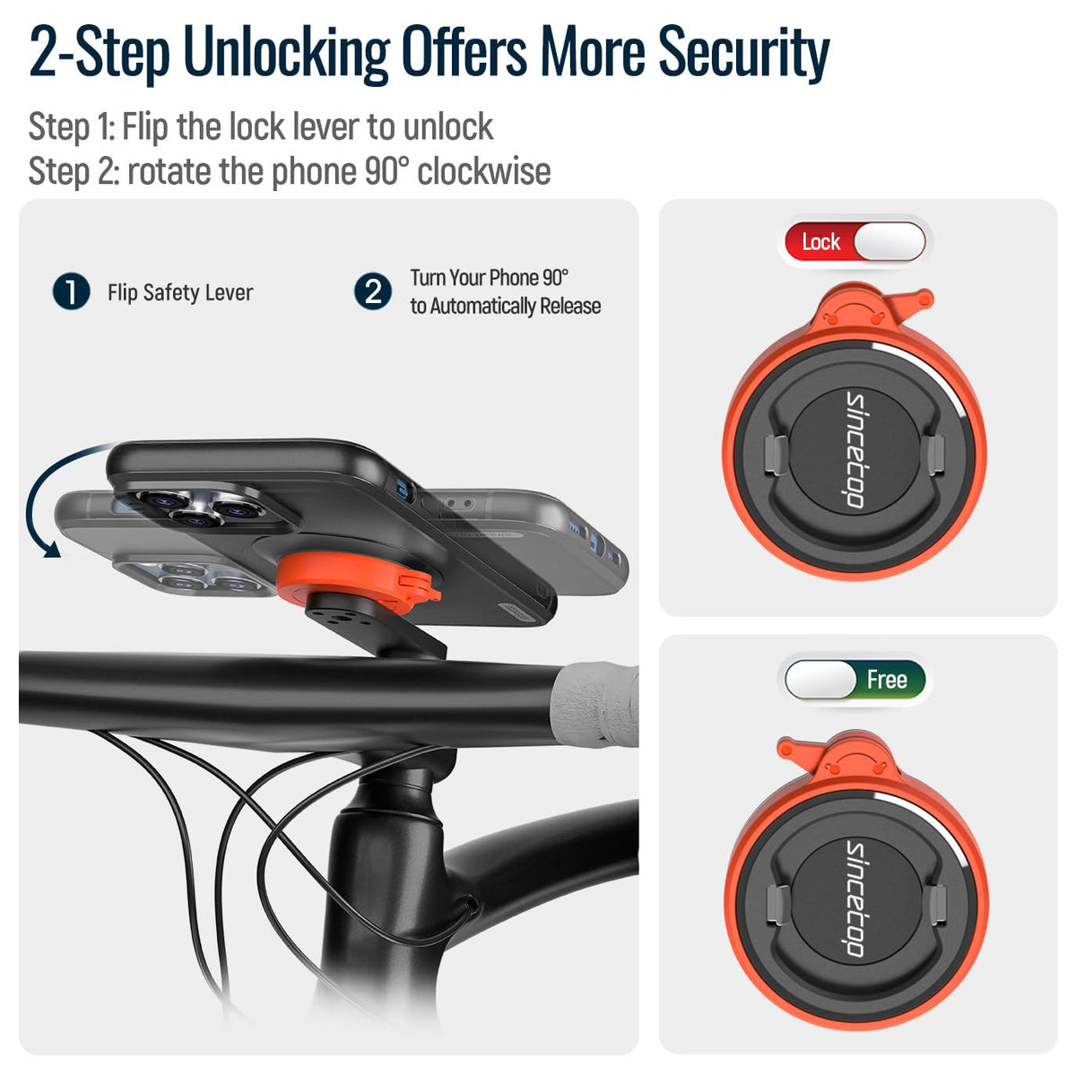Q: How does the quick lock and release feature work?A: The quick lock and release feature allows you to easily attach and detach your phone from the bike mount in seconds using just one hand. This ensures you can stay connected without interrupting your ride.