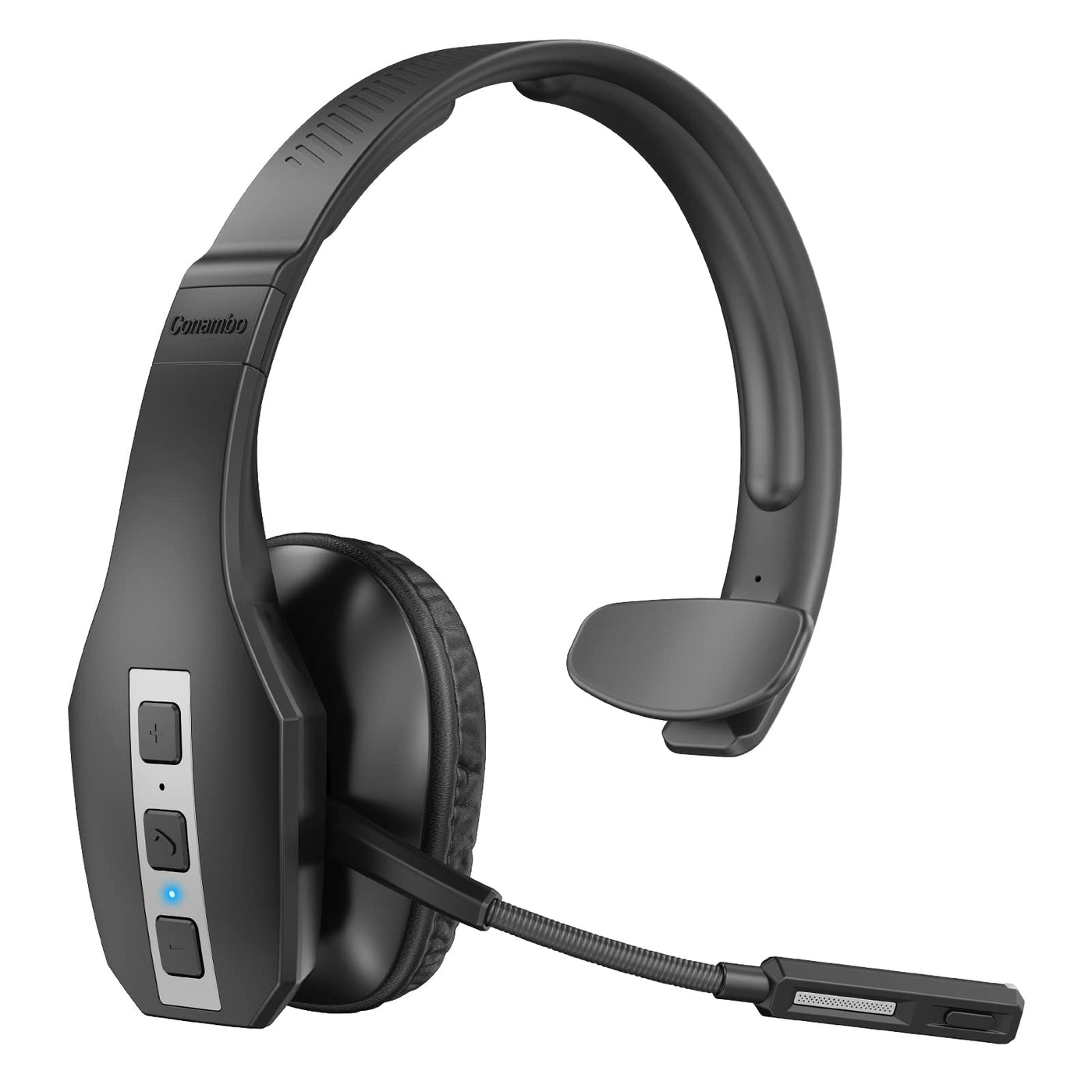 Conambo Bluetooth Headset, CVC 8.0 Noise Cancelling, 35Hrs Talktime, Wireless Handsfree, Large, Black, Mute Button for Drivers & Office