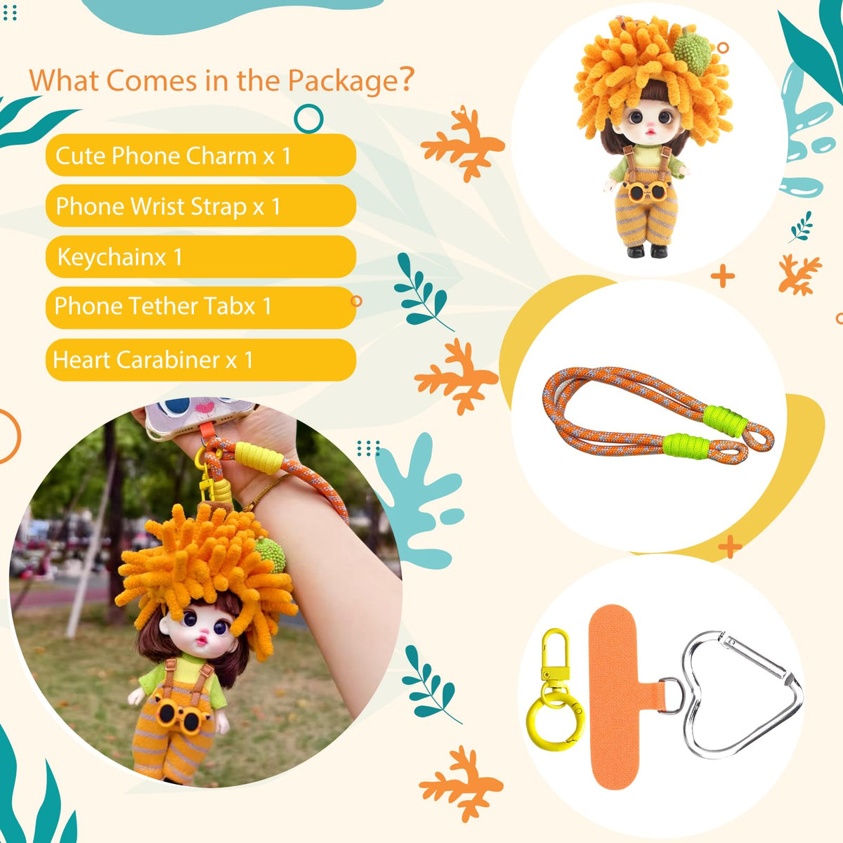 Unleash Your Style With The Complete Accessory Set! Get Ready To Turn Heads With Our Complete Accessory Set! Packed With A Cute Phone Charm, Trendy Wrist Strap (Cell Phone Lanyard), Keychain, Phone Tether, And A Heart Carabiner, This Kit Has Everything You Need To Flaunt Your Fabulous Self. Who Doesnt Love Cute Stuff? Adorable Design Our Cute Girl Phone Charm Beams With A Smile And Vibrant Colors, Guaranteed To Brighten Your Day! With A Stylish Wrist Keychain And An Anti-Theft Phone Strap Wrist, You Get Security And Sass In One! Perfectly Pocket-Sized Measuring Just 2.36 X 5.11 Inches, This Kawaii Charm Fits Right In Your Pocket-Your Fashionable Sidekick For Coffee Runs Or World Tours. Plus, The Key Wristlet Means No More Lost Essentials, Thanks To The Lanyards For Keys! Versatile Use Attach It To Bags, Jazz Up Your Phone, Or Even Secure Your Car Keys. This Phone Lanyard For Women Adapts To Your Every Whim-Versatility At Its Finest! Ideal Gift Choice Need A Gift? This Stylish Pendant Is Perfect For Moms, Friends, Or Anyone Who Deserves A Treat. Birthdays, Holidays, Or Just Because-This Lanyard For Phone Will Earn You Major Brownie Points.