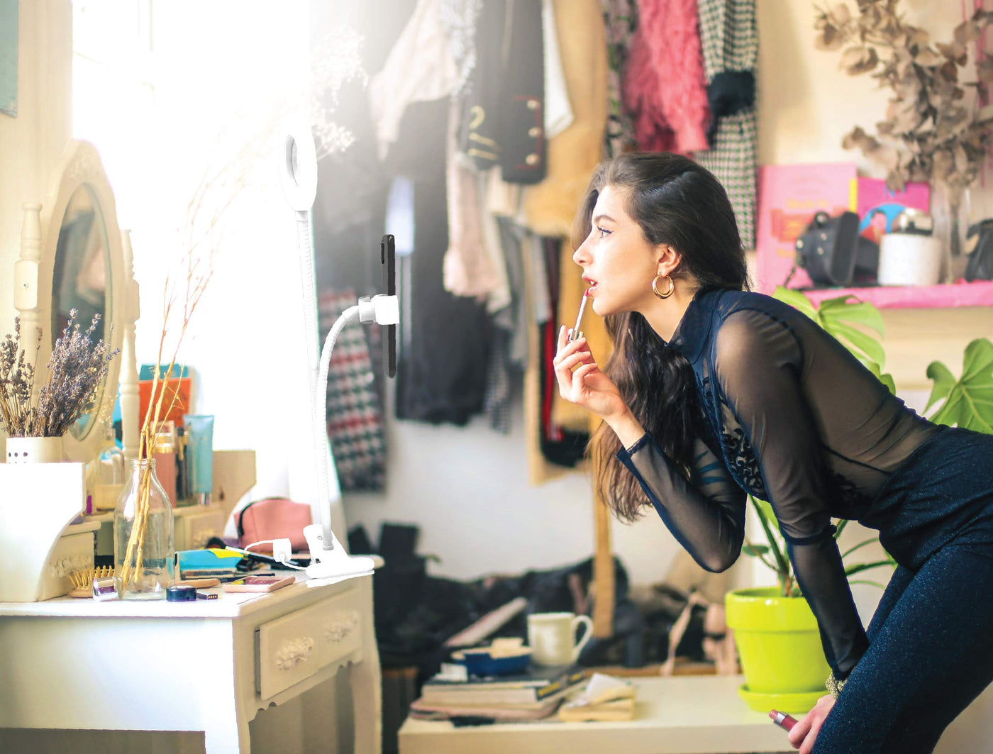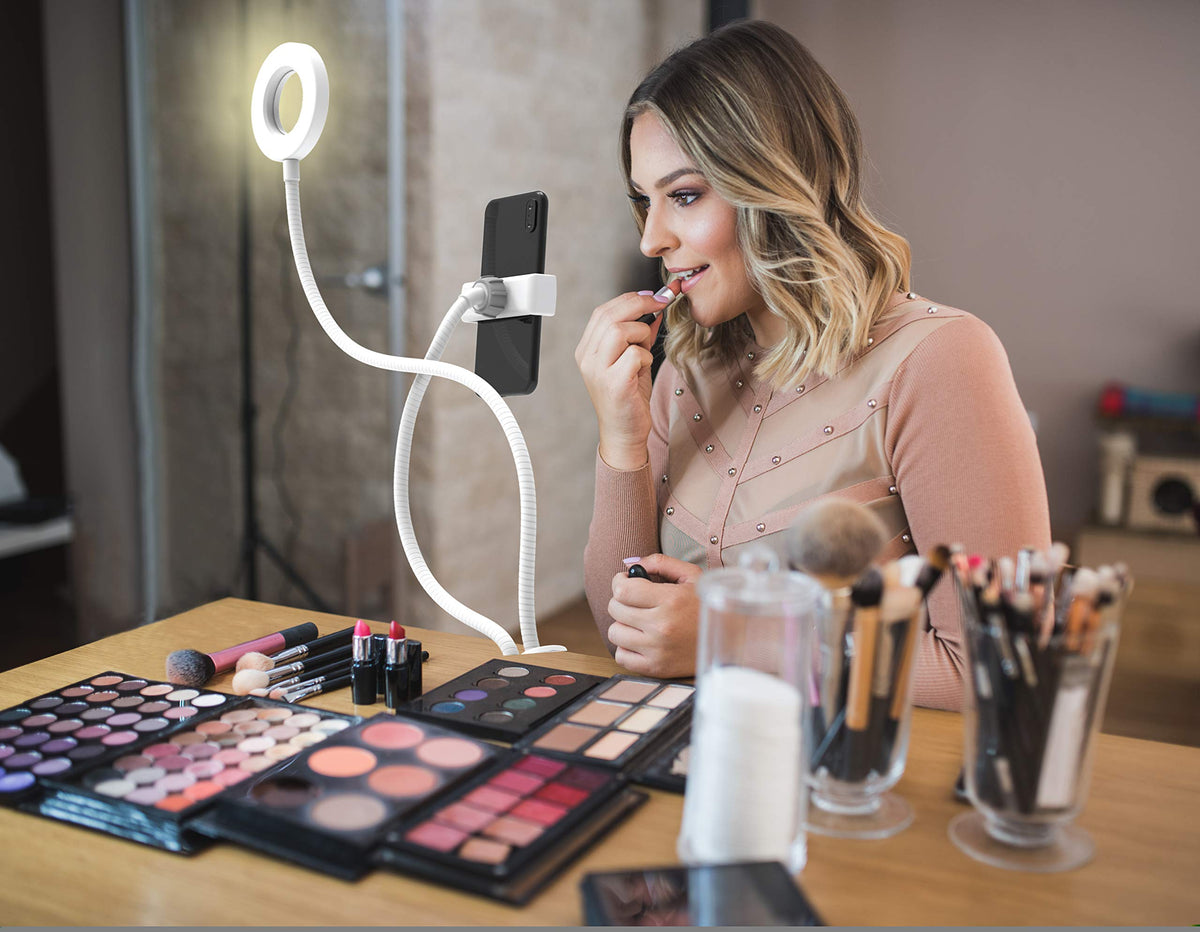 The Digipower Live Streaming Light Kit Features A Flexible Ring Light And Phone Holder For Videos, Live Broadcasts, And More Choose Your Own Color Temperature And Brightness With The Adjustable Ring Light So That You Can Shoot The Ideal Video This Kit Includes A Smartphone Holder, Ring Light, And Clip