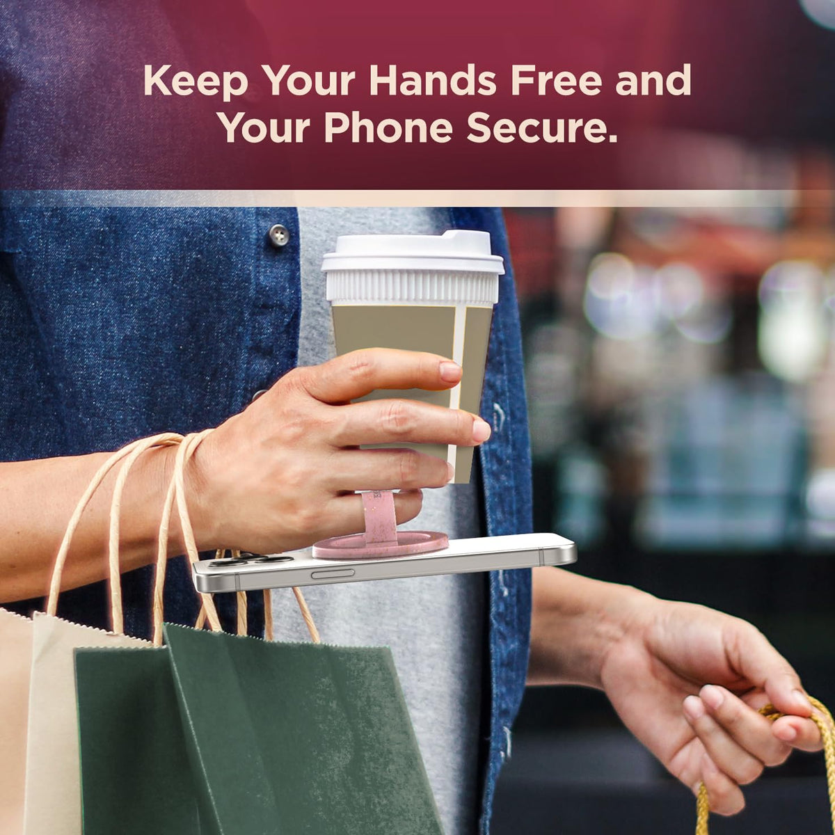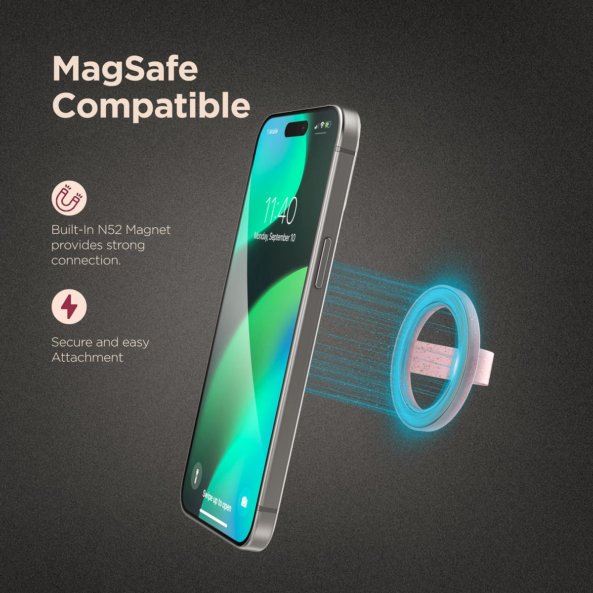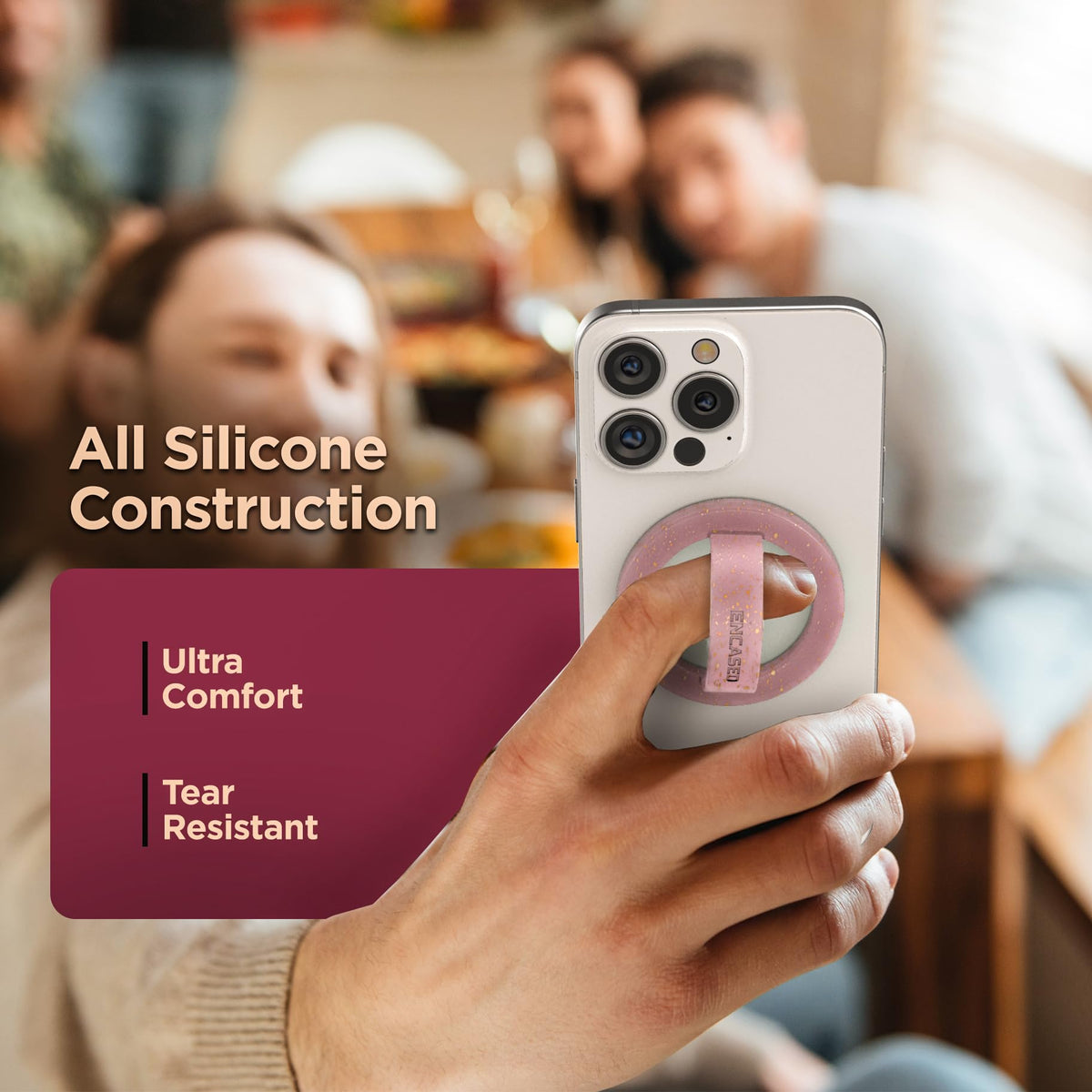 Encased Magnetic Phone Grip Holder (Compatible With Magsafe) Thin Silicone Finger Loop Ring For Iphone (Pink Glitter)
