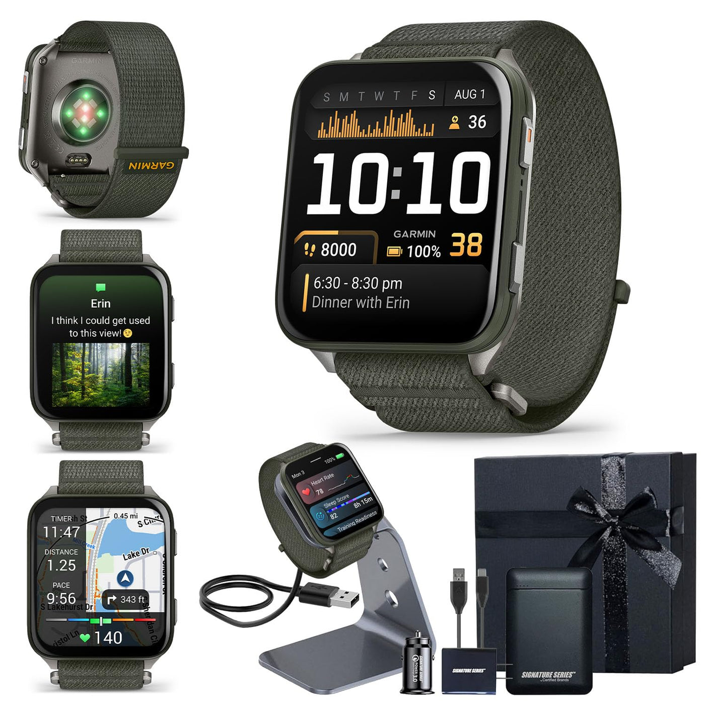 The Venu X1 Gps Smartwatch Features Our Biggest Display - 2 Easy-To-Read Amoled - And Our Thinnest Watch Case Measuring 8 Mm. It Also Has A Sapphire Lens And Bright Led Flashlight. Wear It All Day, Every Day, Thanks To The Sleek And Lightweight Design, Up To 8 Days Of Battery Life In Smartwatch Mode And Comfortfit Nylon Band. Optimize Your Health With Hrv Status, Advanced Sleep Monitoring And Body Battery Energy Monitoring (Data Presented Is Intended To Be A Close Estimation Of Metrics Tracked). Track Your Passions With More Than 100 Preloaded Sports Apps, Including Running, Golf And Strength Training. Train For An Event, Achieve A Milestone, Or Improve Your Fitness With Garmin Coach Training Plans For Running, Cycling Or Strength. Train Smarter And Maximize Your Performance With The Training Readiness Score, Training Status And Endurance Score, And Be Prepared For Whatever The Day Brings (Data Presented Is Intended To Be A Close Estimation Of Metrics Tracked). Stay Connected And Take Calls From Your Wrist With A Built-In Speaker And Microphone When Your Watch Is Paired To Your Smartphone. Onboard Topoactive Maps And 43,000+ Preloaded Golf Courses Allow You To Navigate On The Trail, The City Or The Course. Included With The Smartwach Is The Signature Series Garmin Watch Stand For Convenient Charging On A Desk, Countertop, Or Nightstand.