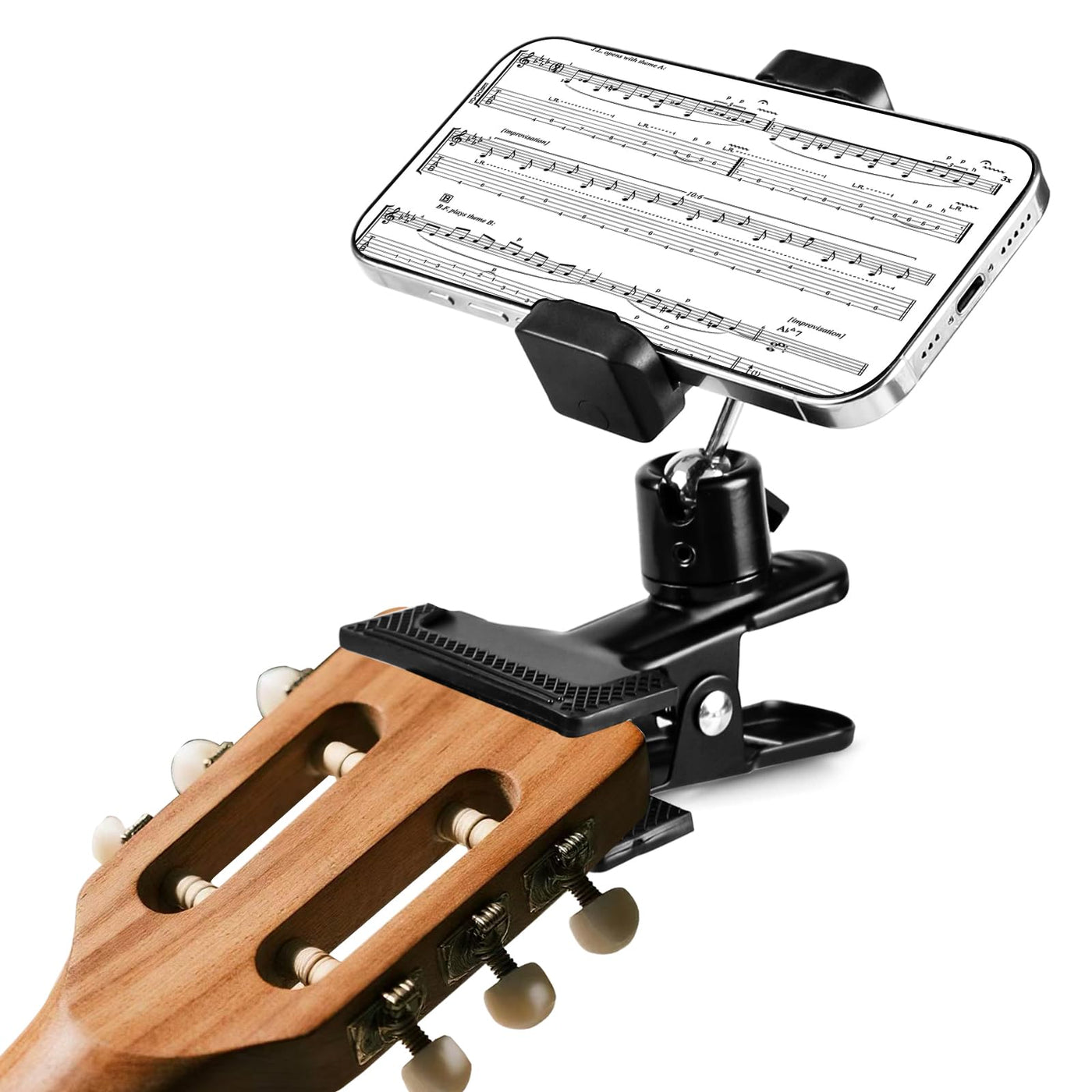 Guitar Phone Holder [Big Phones Friendly] 360 Adjustable Guitar Phone Mount for Ukulele Bass Live Broadcast Teaching Video, Univ