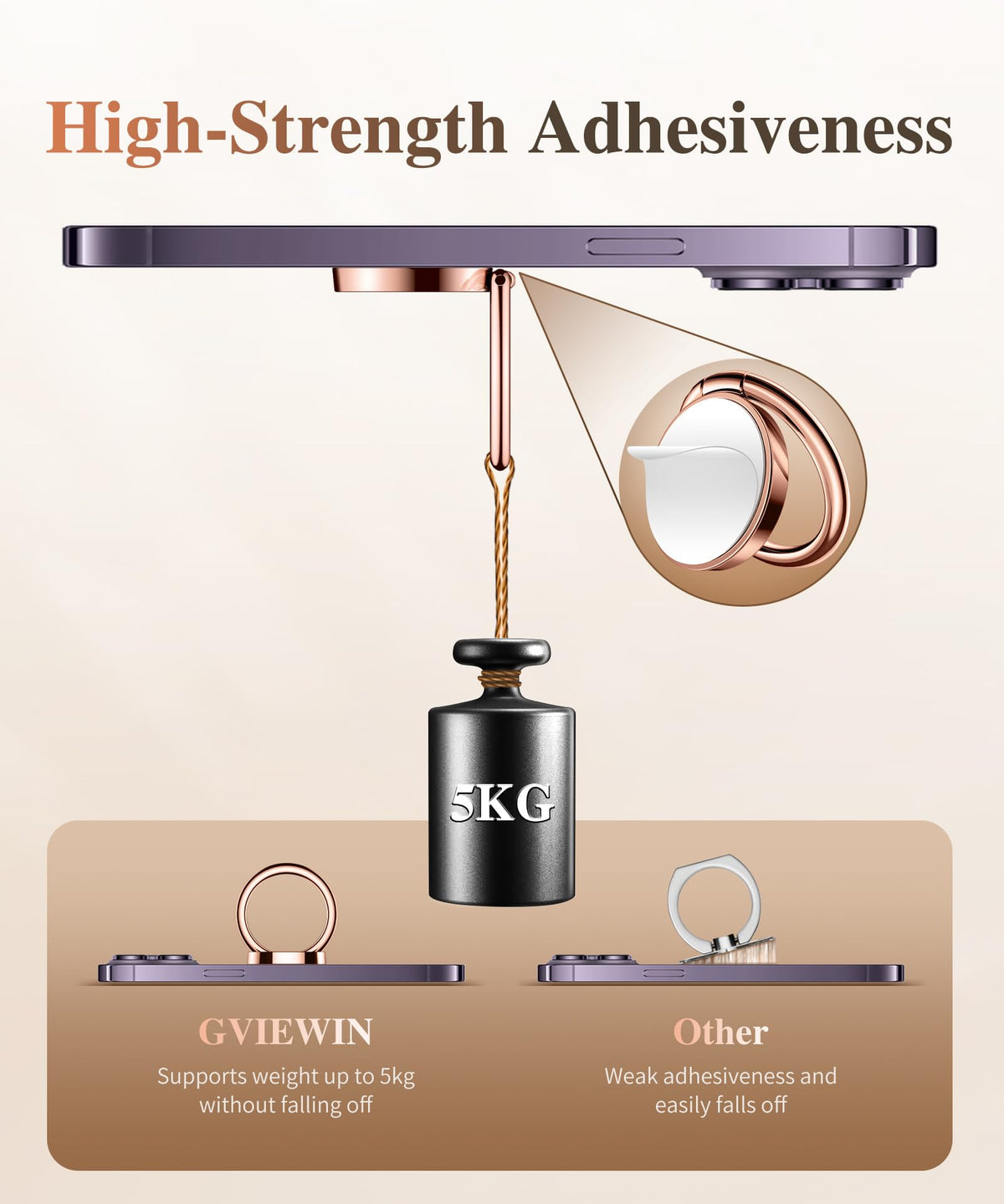 Q: Can I use the phone ring holder as a kickstand?A: Yes, the GVIEWIN Glitter Cell Phone Ring Holder can be used as a kickstand. It features a 180° adjustable support angle, allowing you to position your phone at the best angle for viewing or video calls.