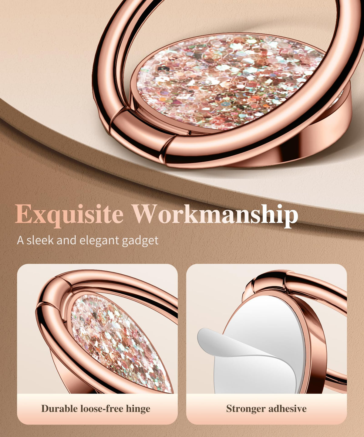 Gviewin Glitter Cell Phone Ring Holder, Metal Kickstand Grip For Magnetic Car Mount Compatible With Iphone 15 Pro Max/15 Plus/14/13/12 Series & Galaxy S24/S23 Ultra And Other Phones(Pinkgold Glitter)