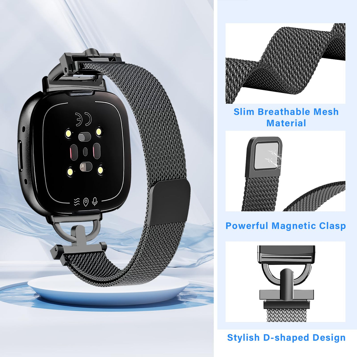 Hayonliy Magnetic Bands Compatible For Fitbit Versa 4/Fitbit Versa 3/Fitbit Sense 2/Fitbit Sense, Mesh Stainless Steel Thin Stra