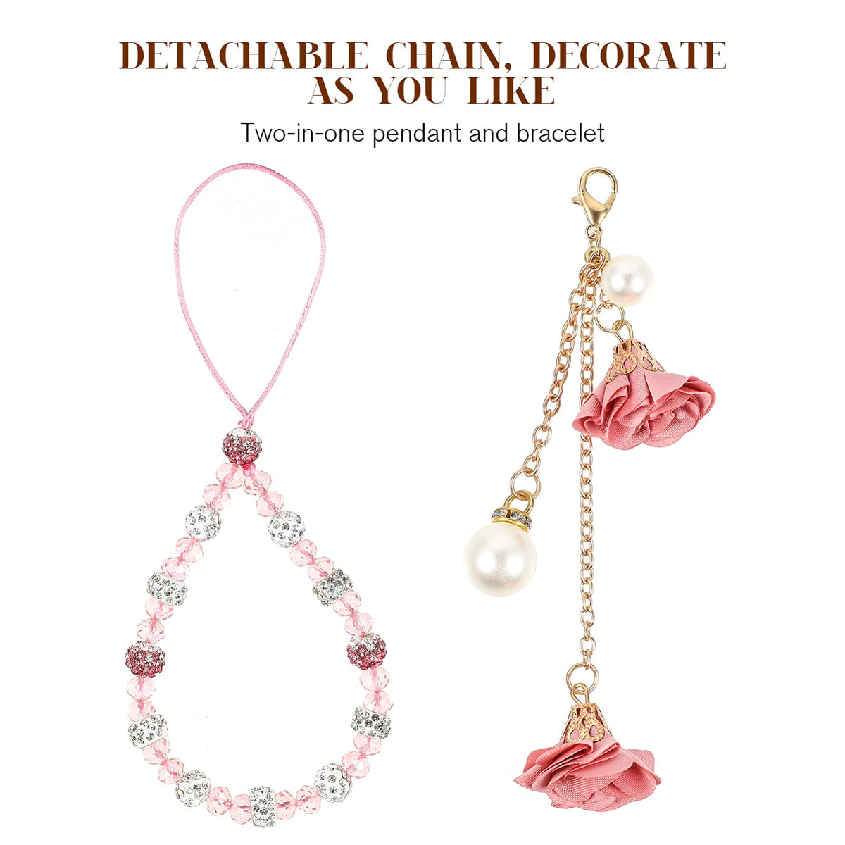 Hemobllo Cell Phone Straps Creative Crystal Flower Pendant Phone Charm Non Slip Phone Lanyard Wrist Strap For Decoration